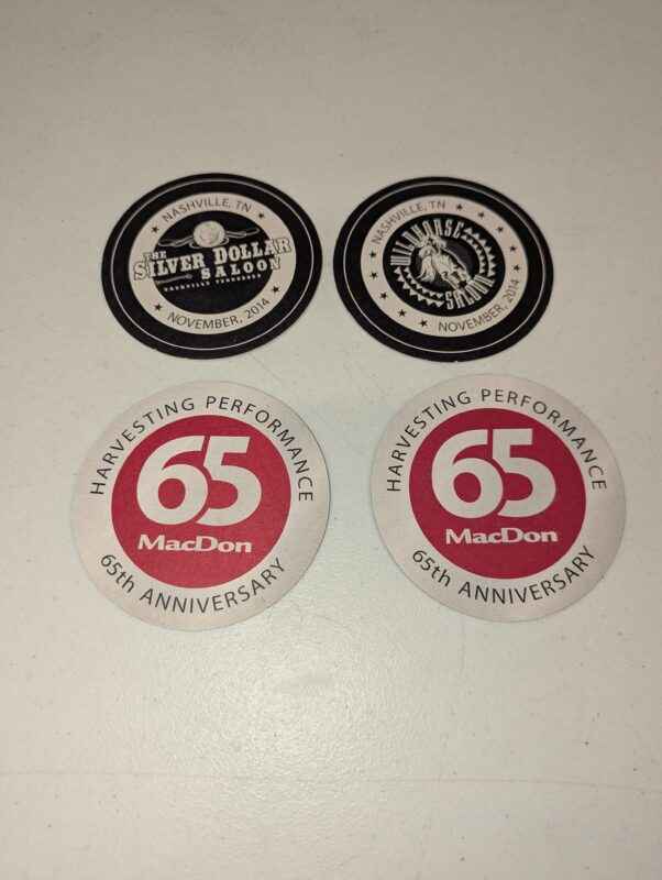 Macdon sponsored beverage coasters- the Silver Dollar Saloon, Wild Horse Saloon in Nashville, Tennessee