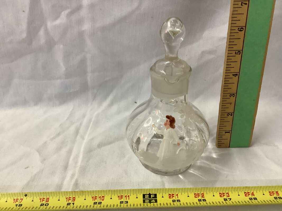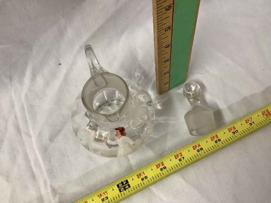 Mary Gregory handblown cruet c/w glass stopper, 6 1/2″
