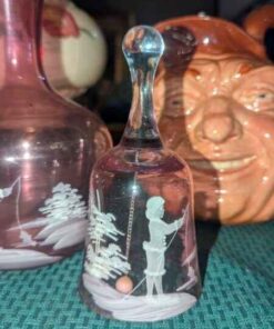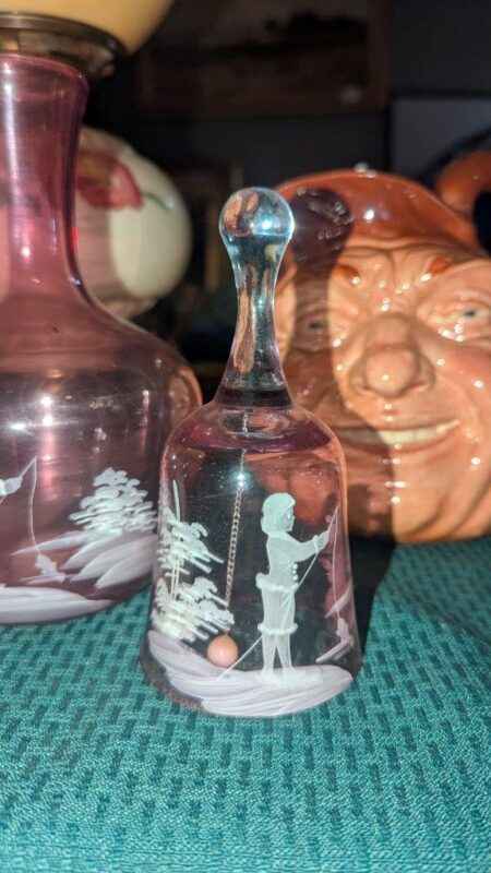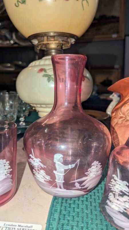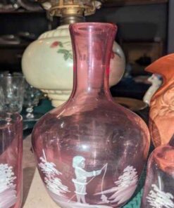 Mary Gregory style pink bedside carafe set and bell
