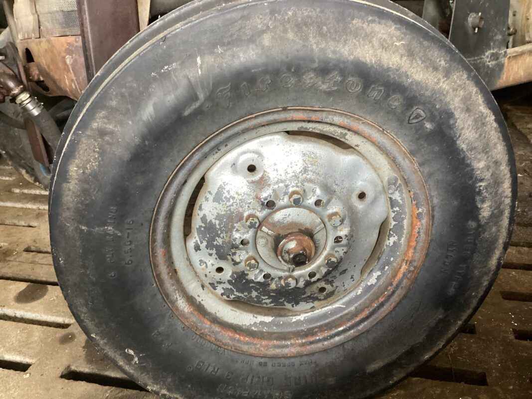 Front tires are 6.5-16- Firestone. rears are 13.6R28 Michelin.