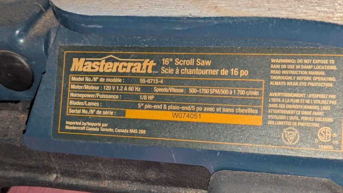 Mastercraft 16″ scroll saw
