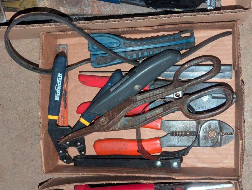 Metal cutters, wire strippers, flex wrench, etc