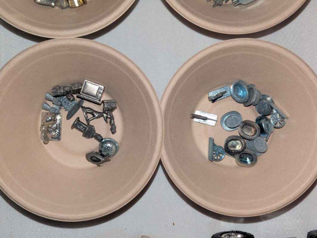 Metal Monopoly & Assorted gaming pieces