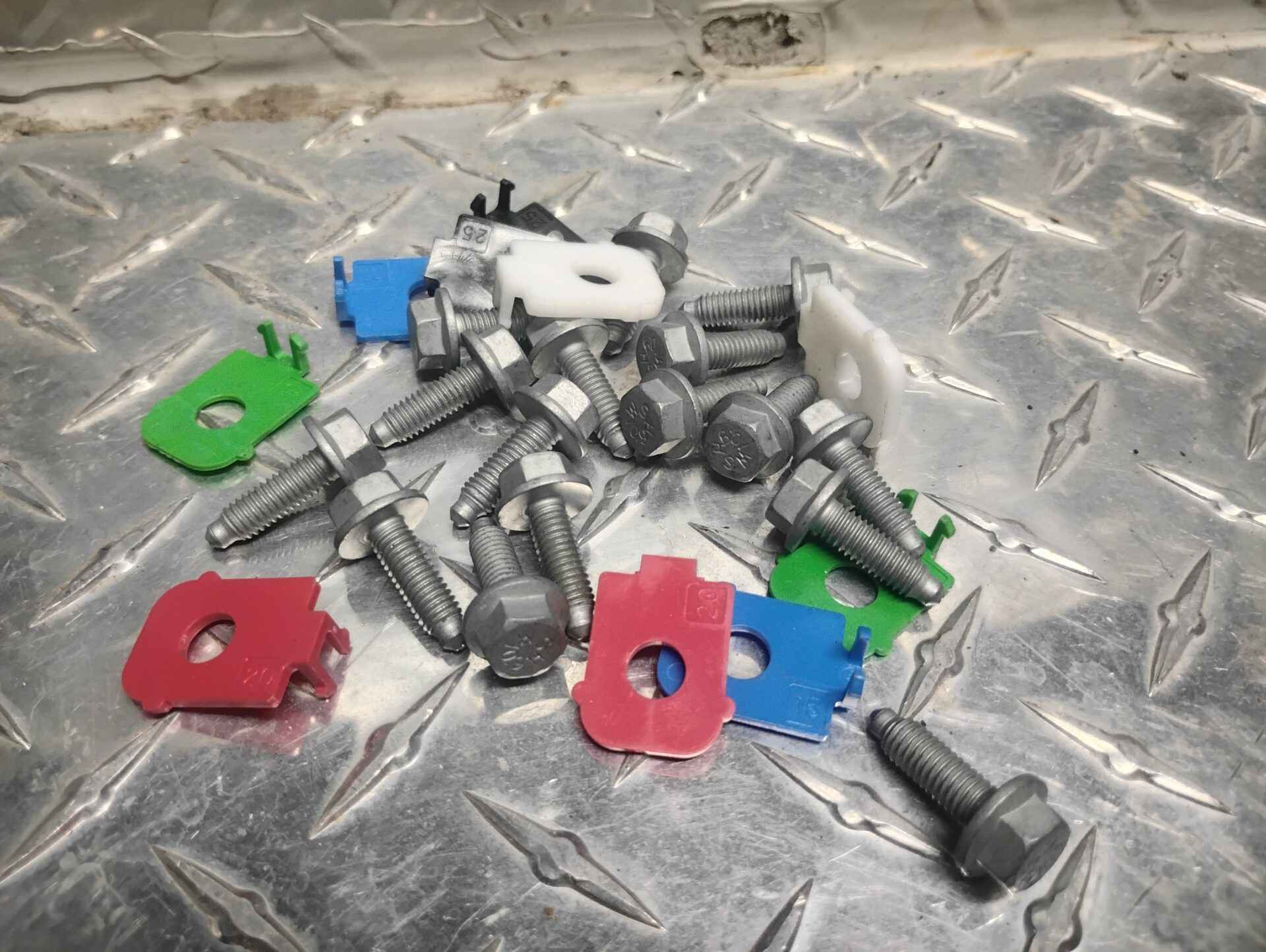 Metric bolts with colored plastic washers