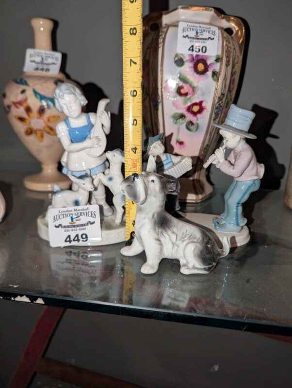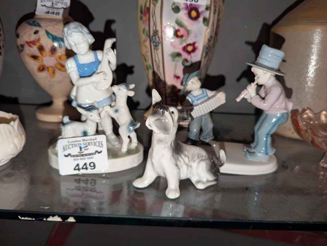 Metzler & Ortloff Accordian and Flute, assorted porcelain figures