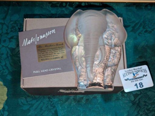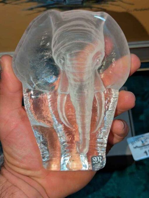 Mats Jonasson etched crystal elephant Paperweight
