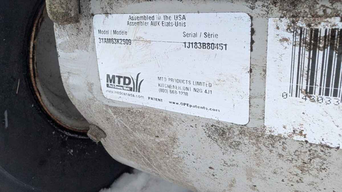 the addition of this lot could not be timelier! MTD Model 31AM63K2509 with electric start; Powermore Premium OHV engine 208cc; 24″ clearance. Owner has declared this unit is in working order but has not been serviced for the season.