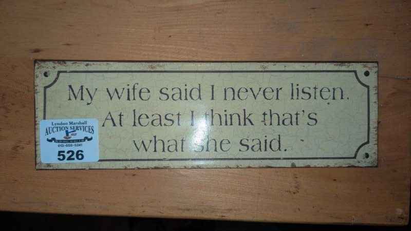 “My Wife says I never listen…” Wall sign