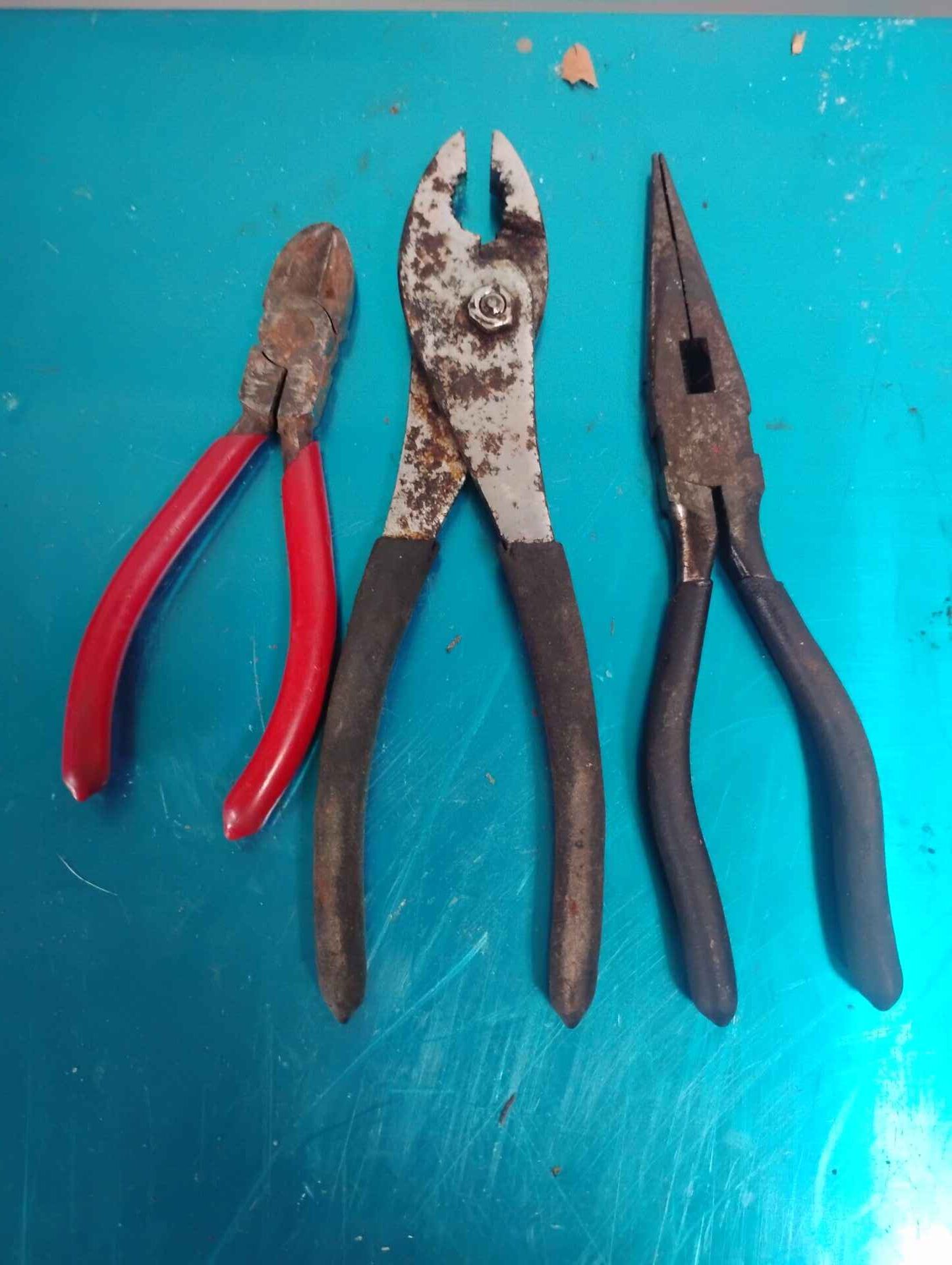 Needle nose pliers , slip joint pliers and side cutters