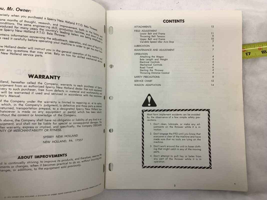 New Holland Bale Thrower 54A Operators Manual