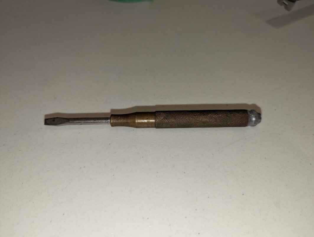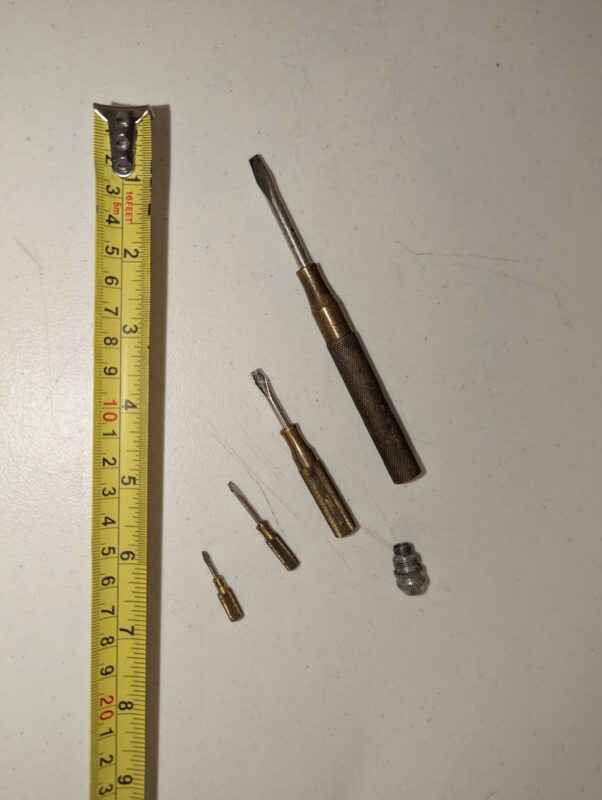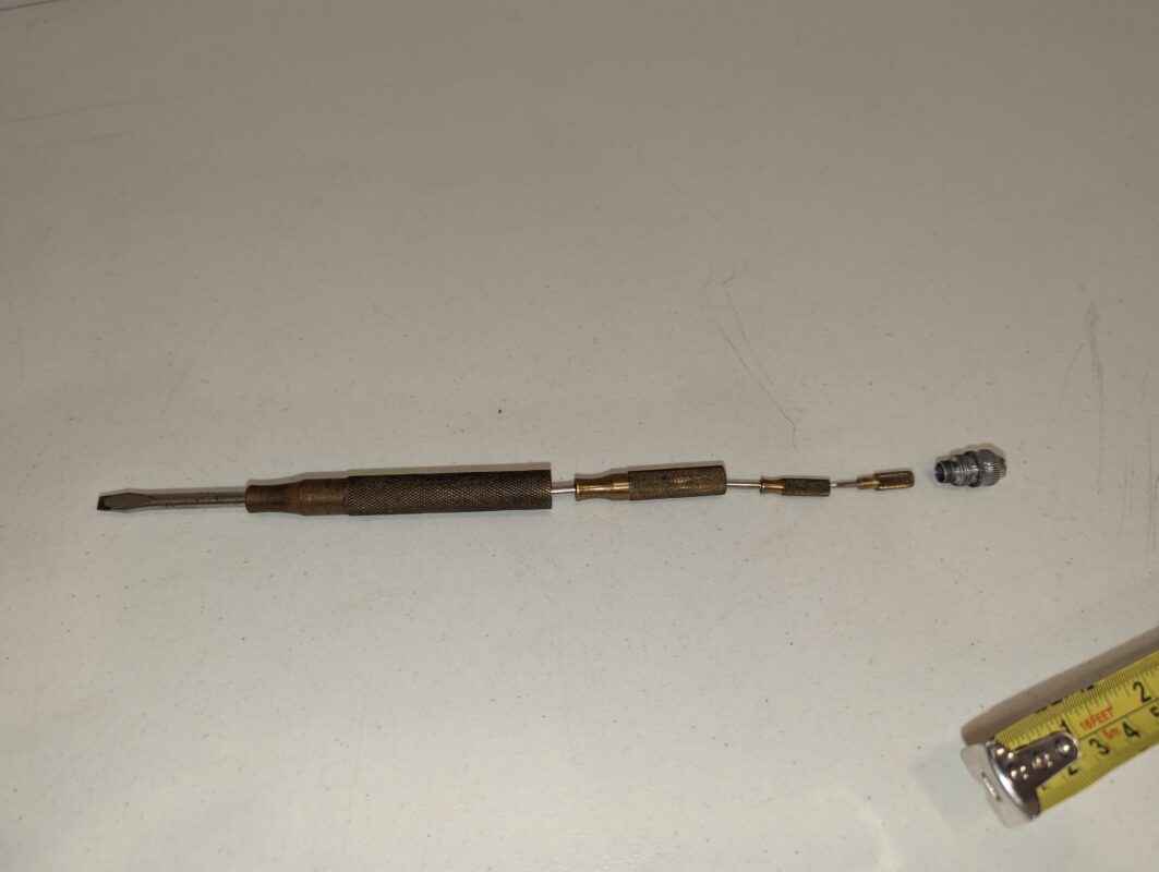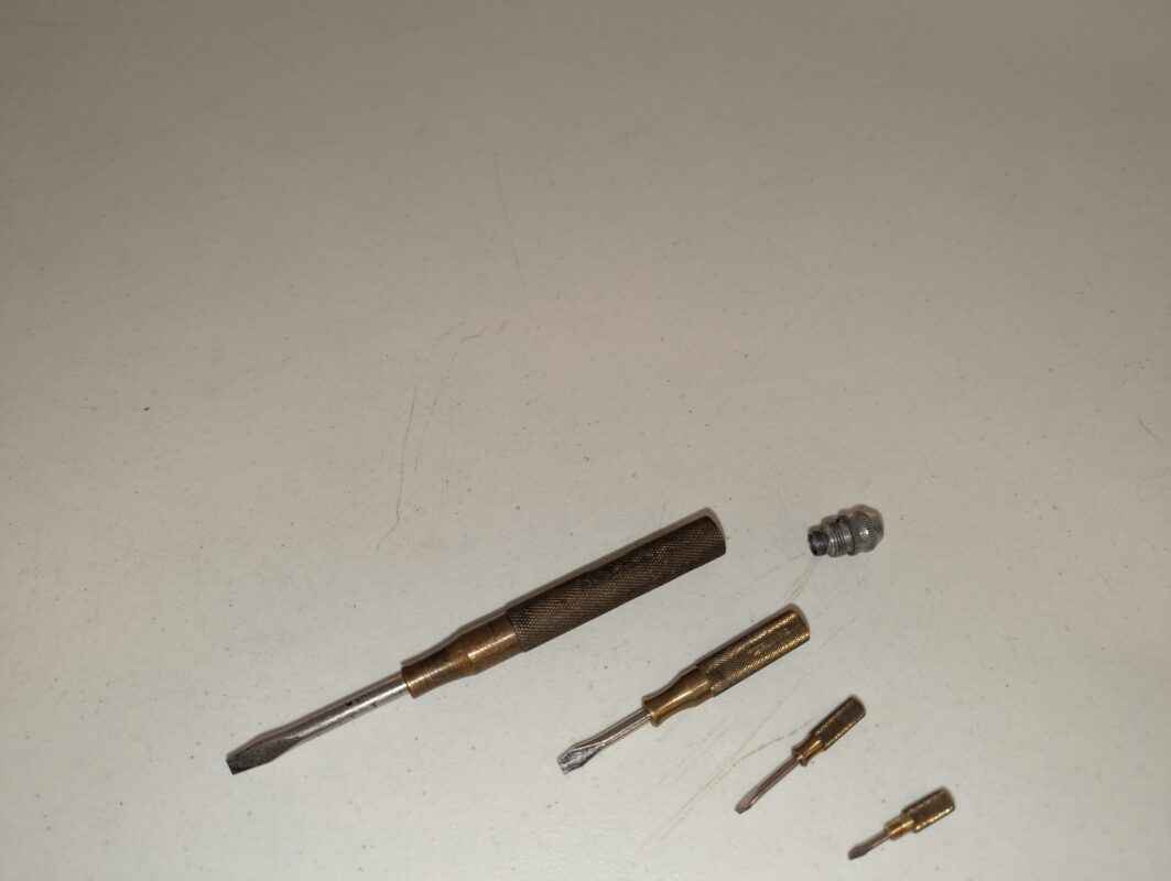 New Holland Branded 4pc Screw Driver Set – Handed out by Sperry New Holland – unique piece of history. All the screwdrivers are stored inside the one. Handy little tool on the farm.