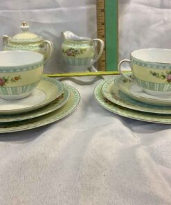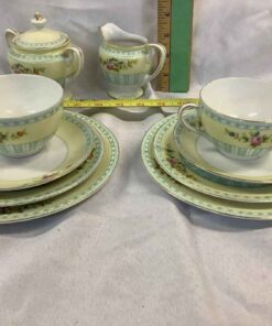 2 x cups, saucers, bread plate, lunch plate and cream & sugar