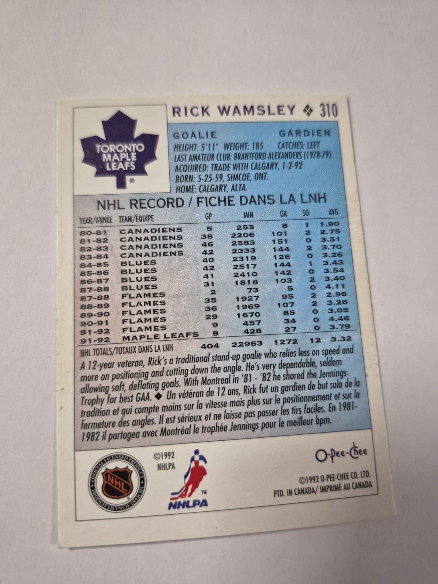 O Pee Chee Rick Wamsley card # 310