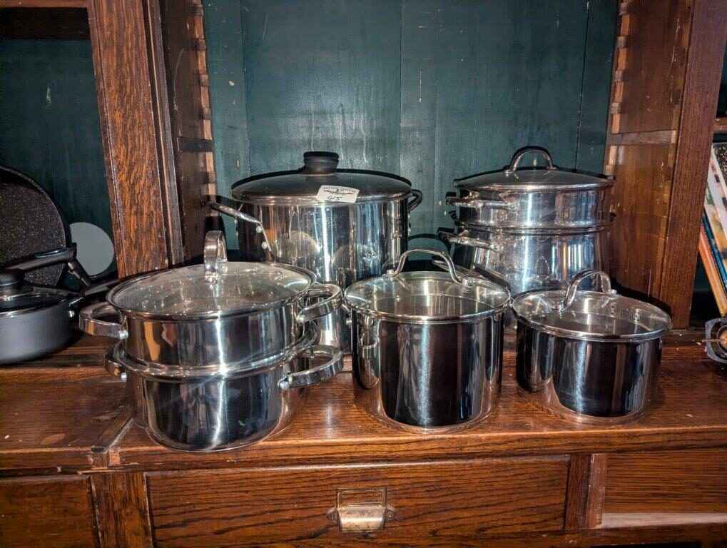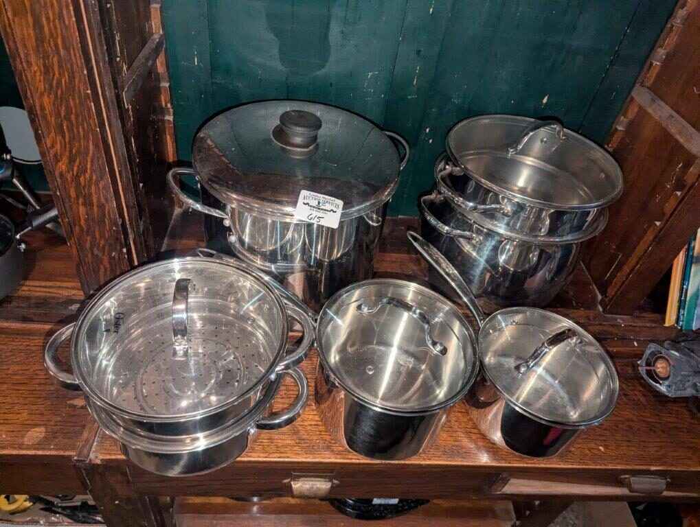 Oster & assorted Stock pots, strainers