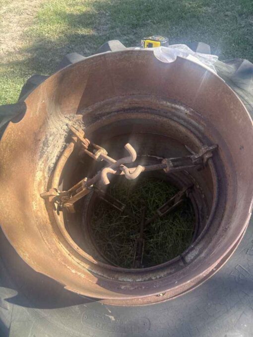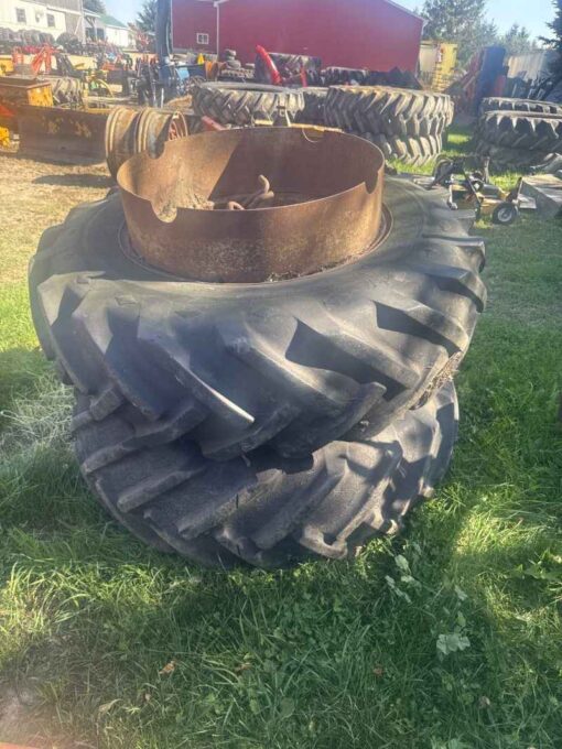 Pair of 14.9 28 tires with duals and hardware
