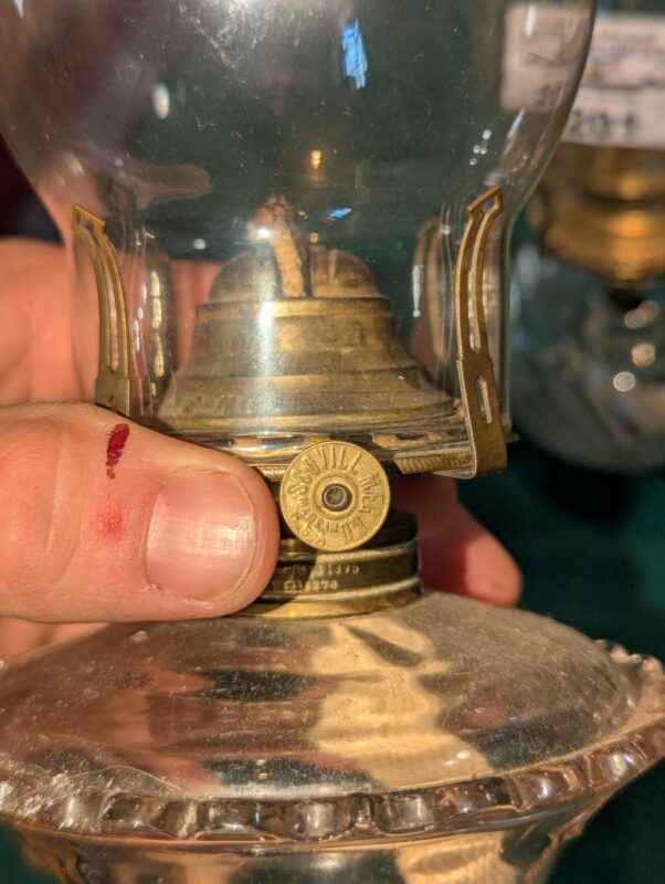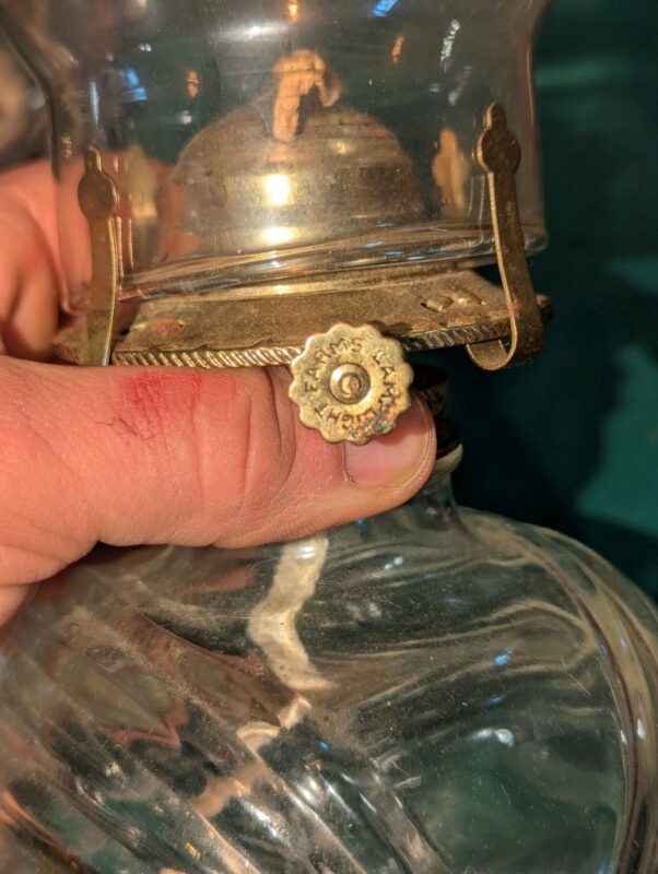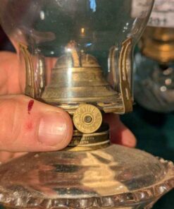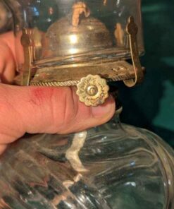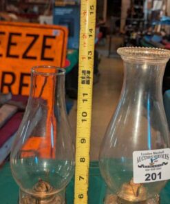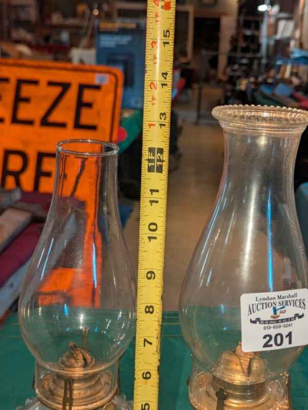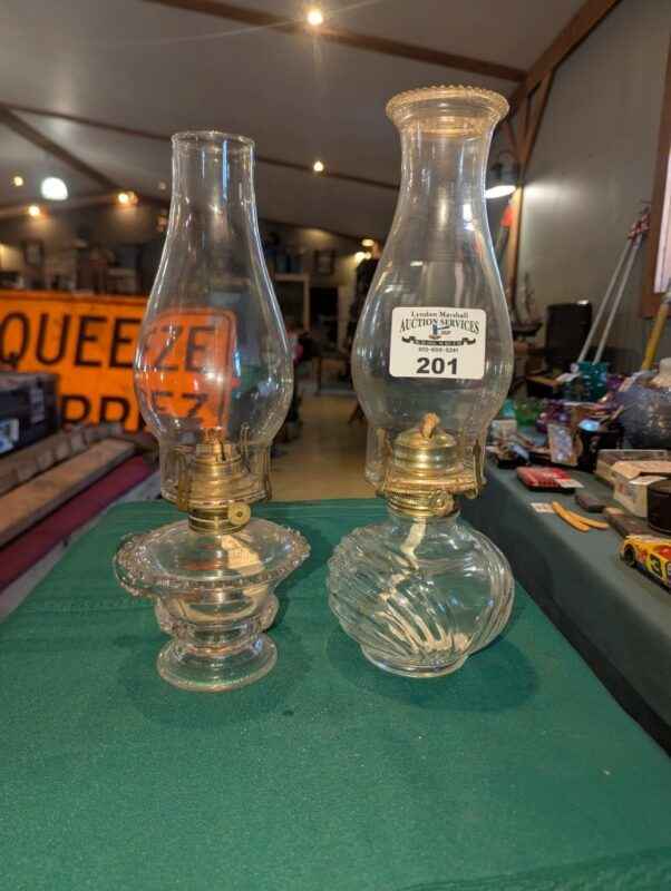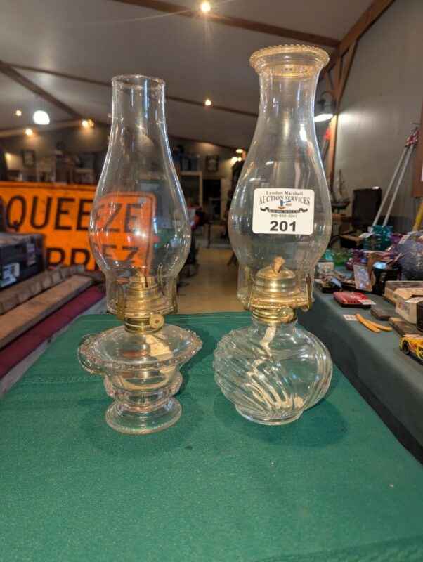 Pair of clear glass oil lamps