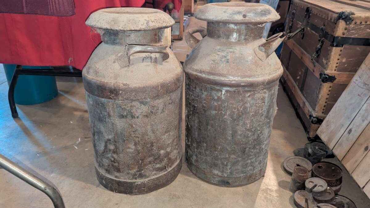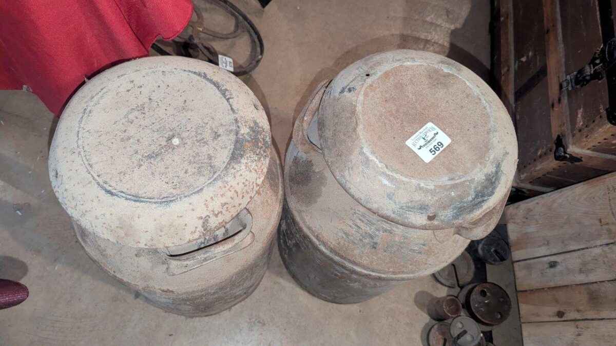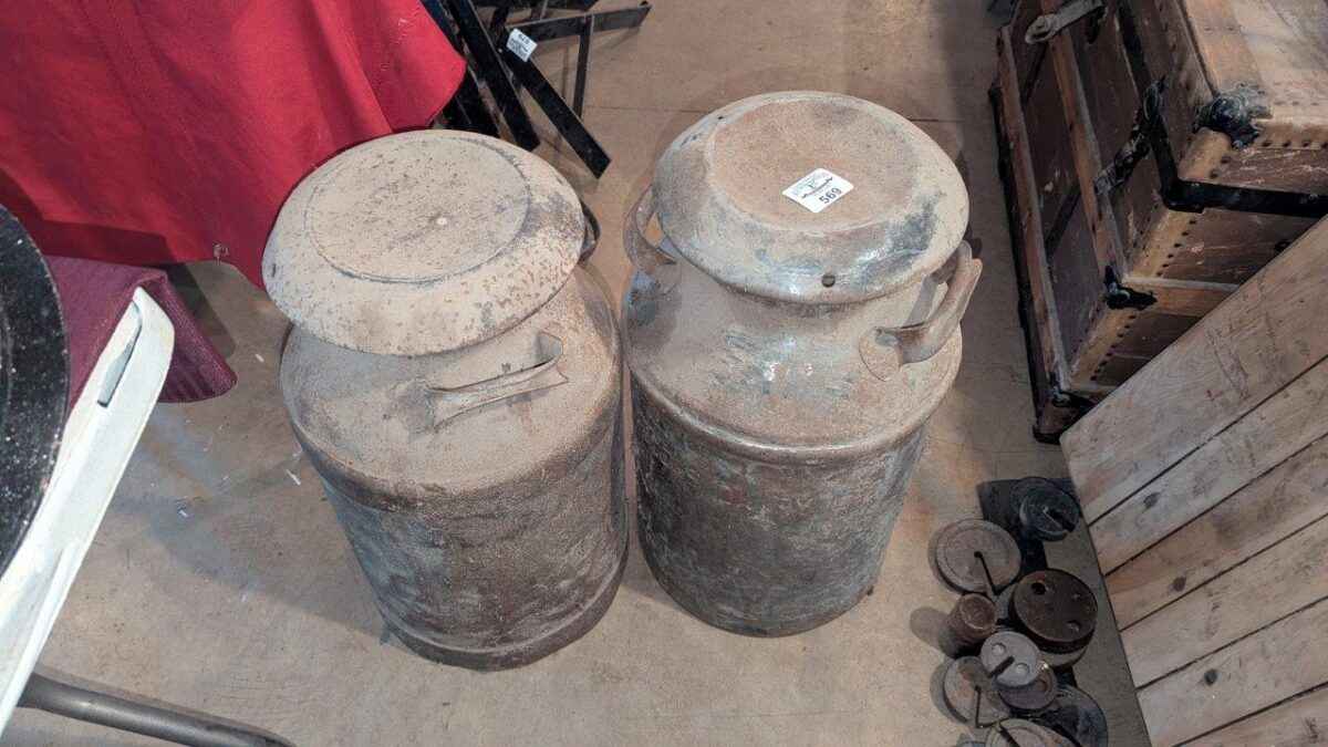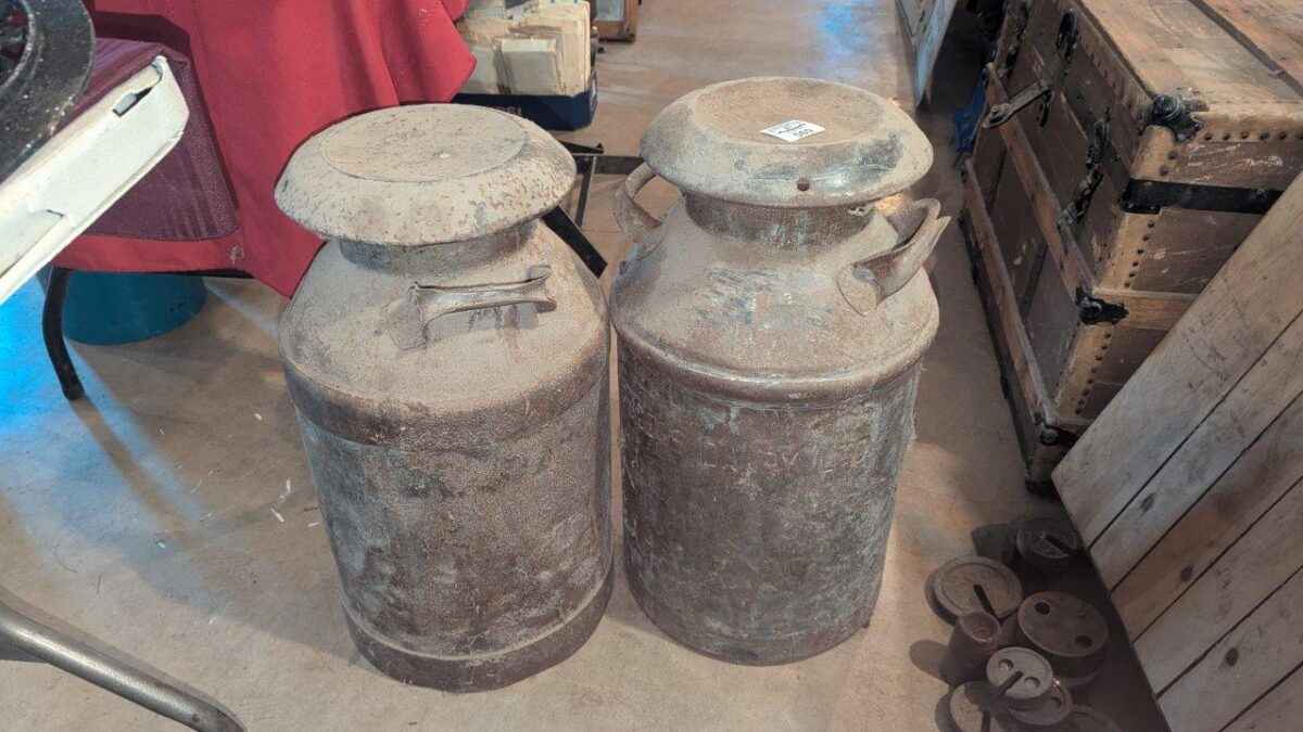 Pair of milk cans with lids