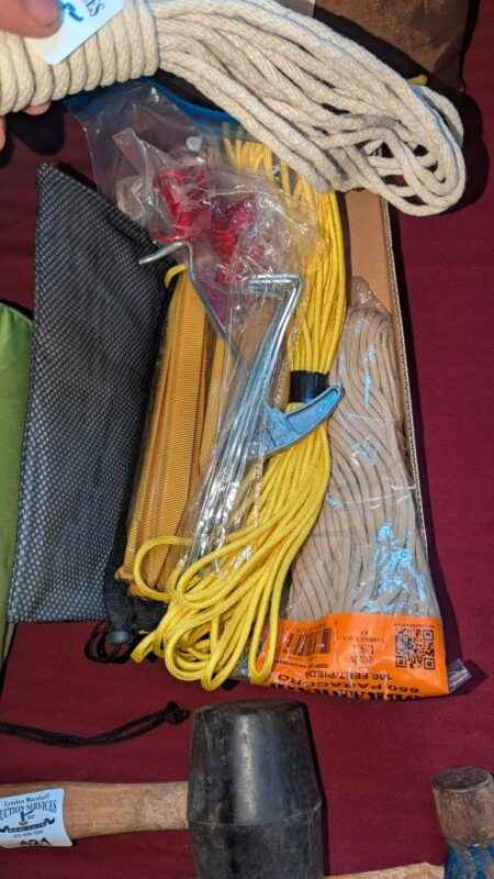 Paracords, tent pegs, etc