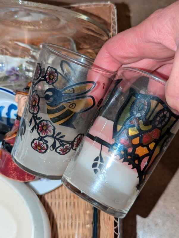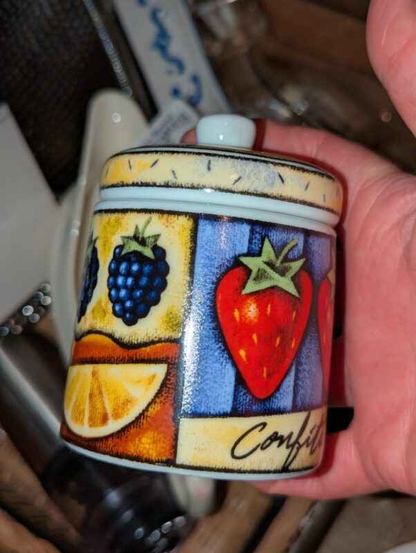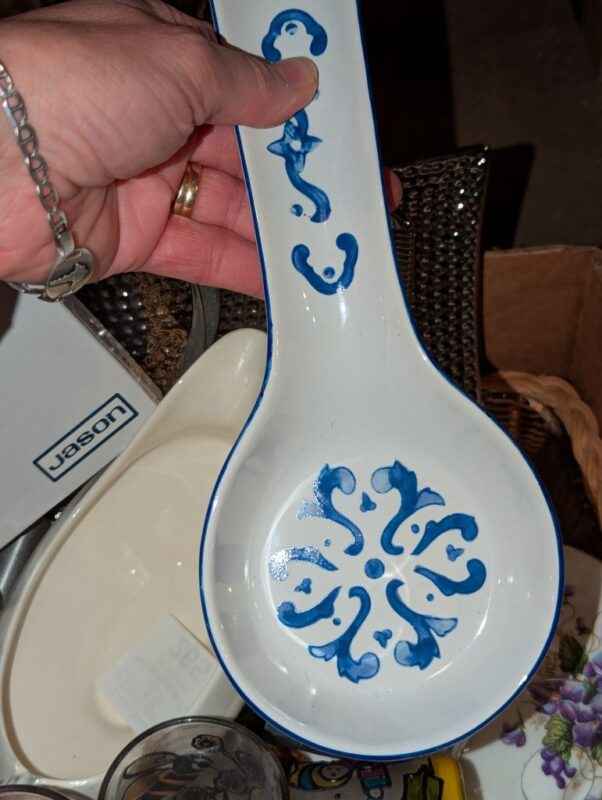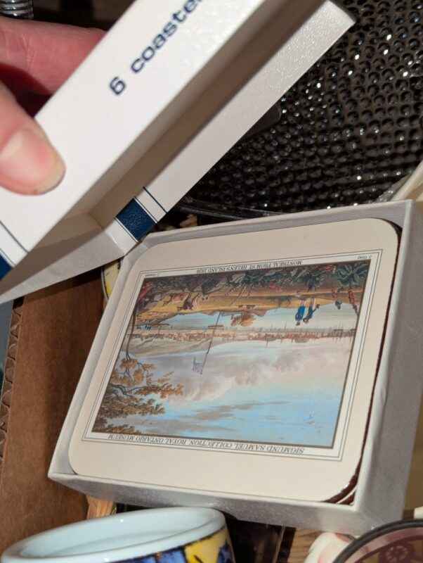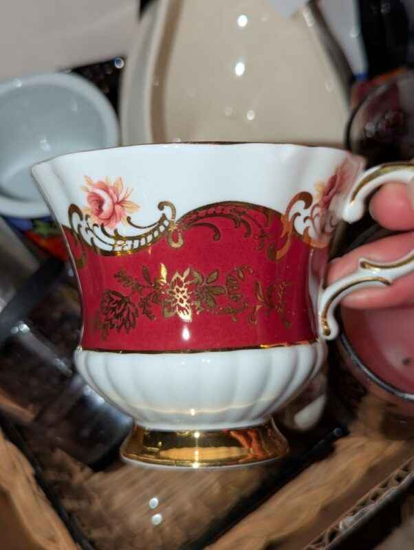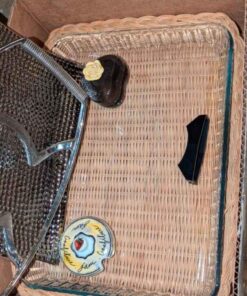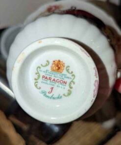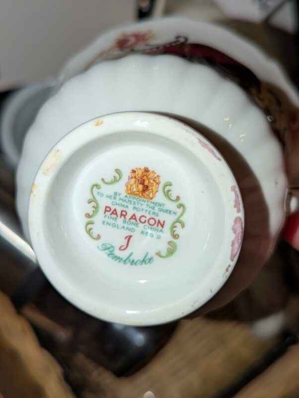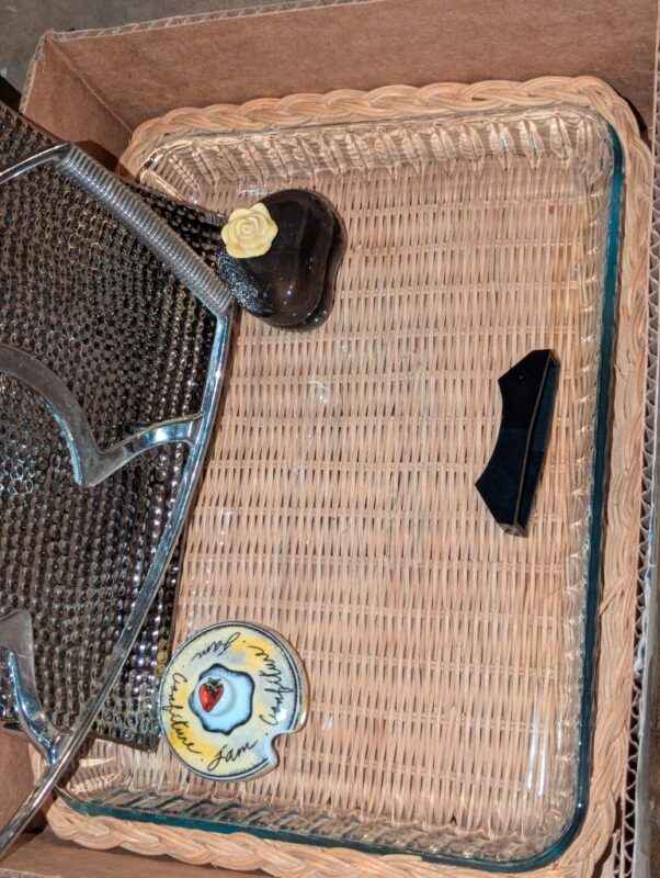 Paragon tea cup, Casserole dish w/woven cradle, spoon rest, candles, etc