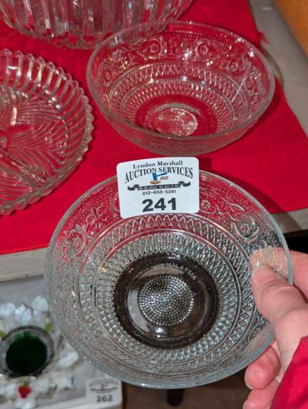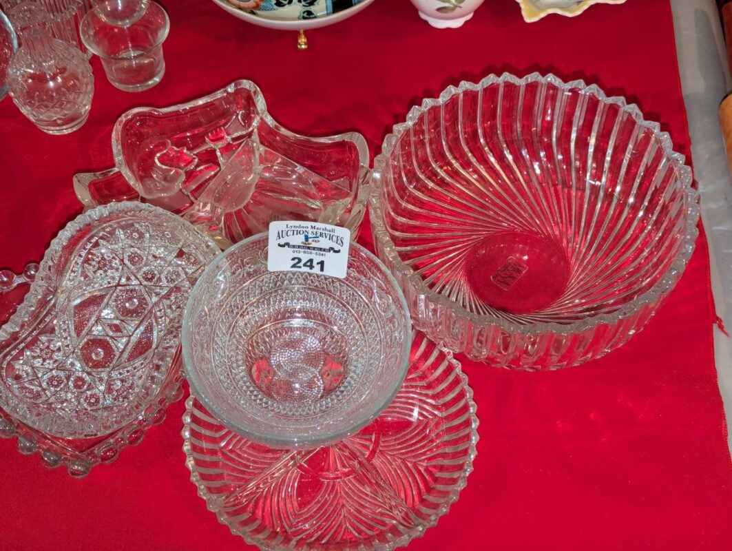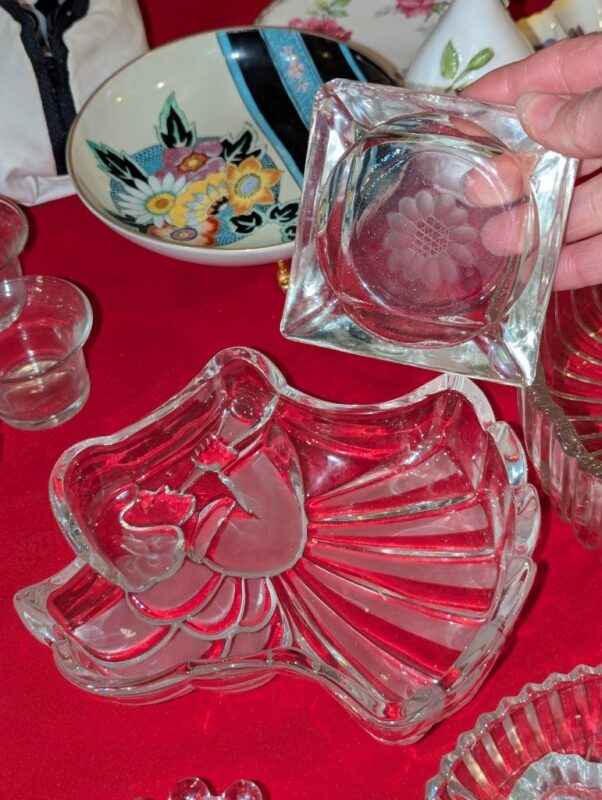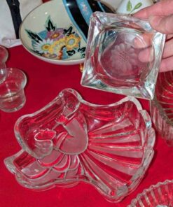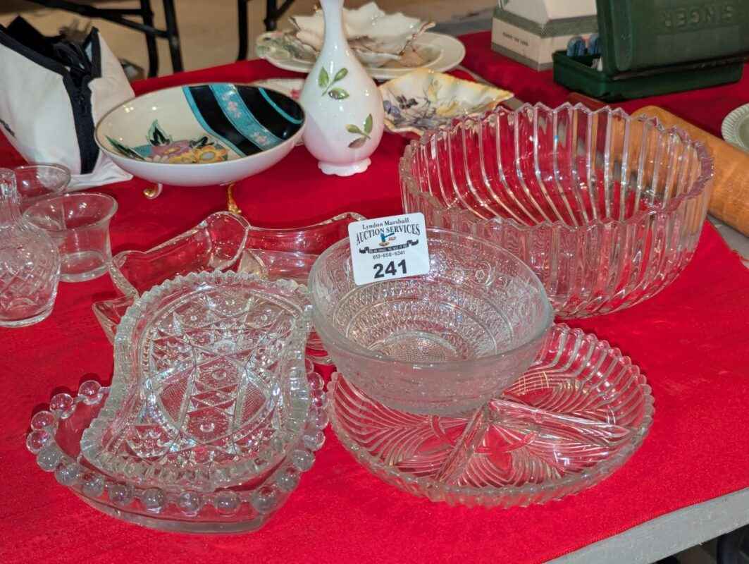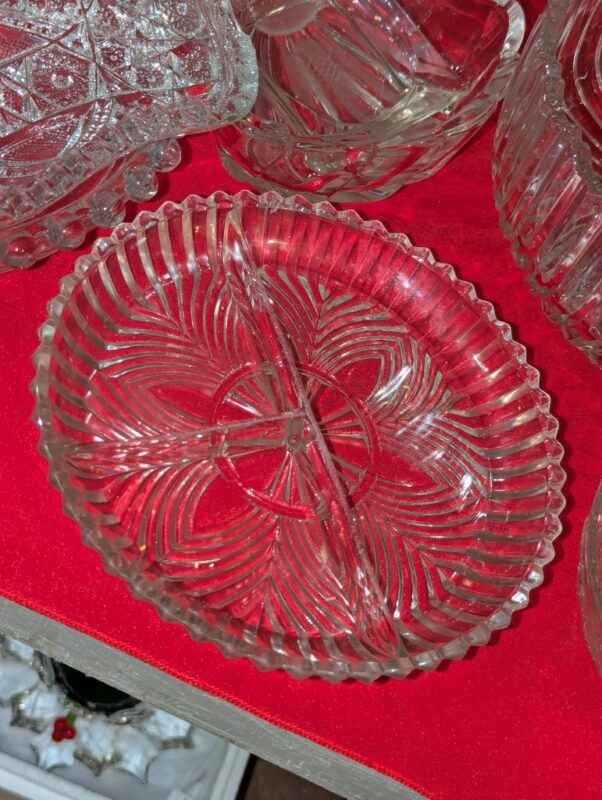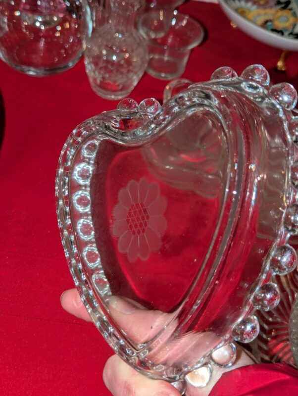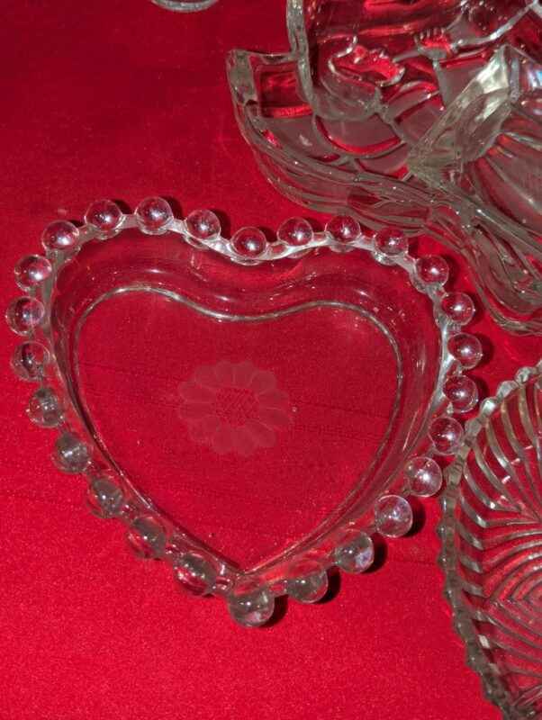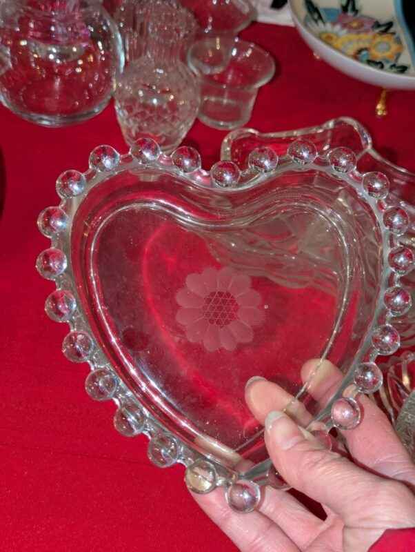 Pickle dishes, serving bowls, hobnail edged heart bowl, etc