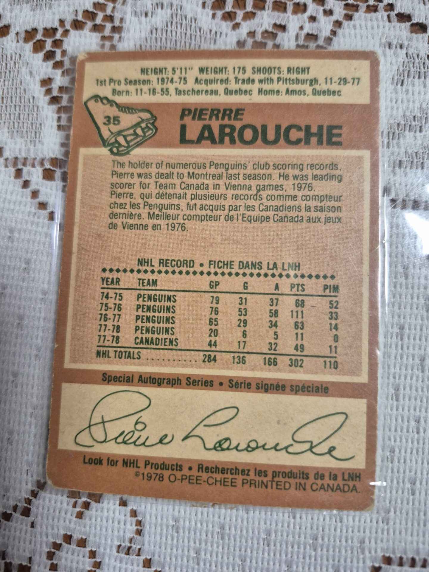 Pierre Larouche signed card