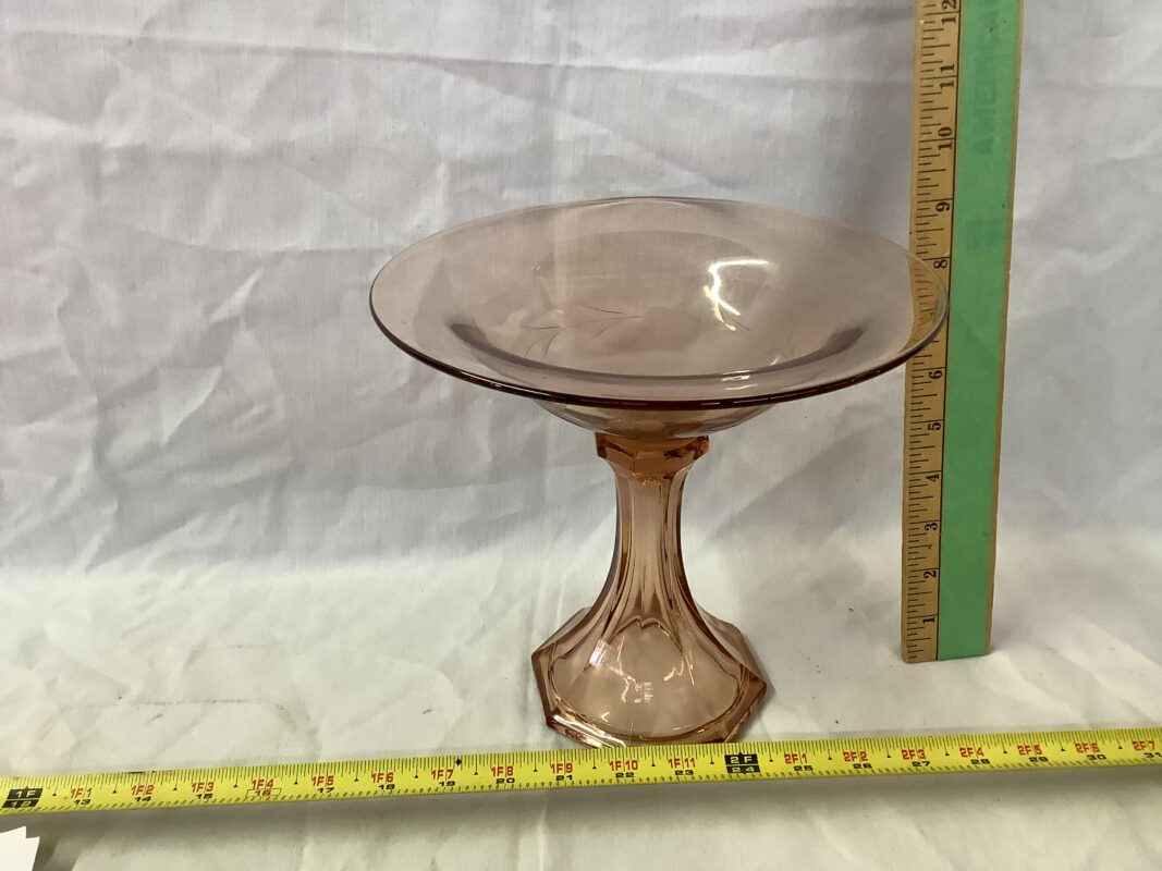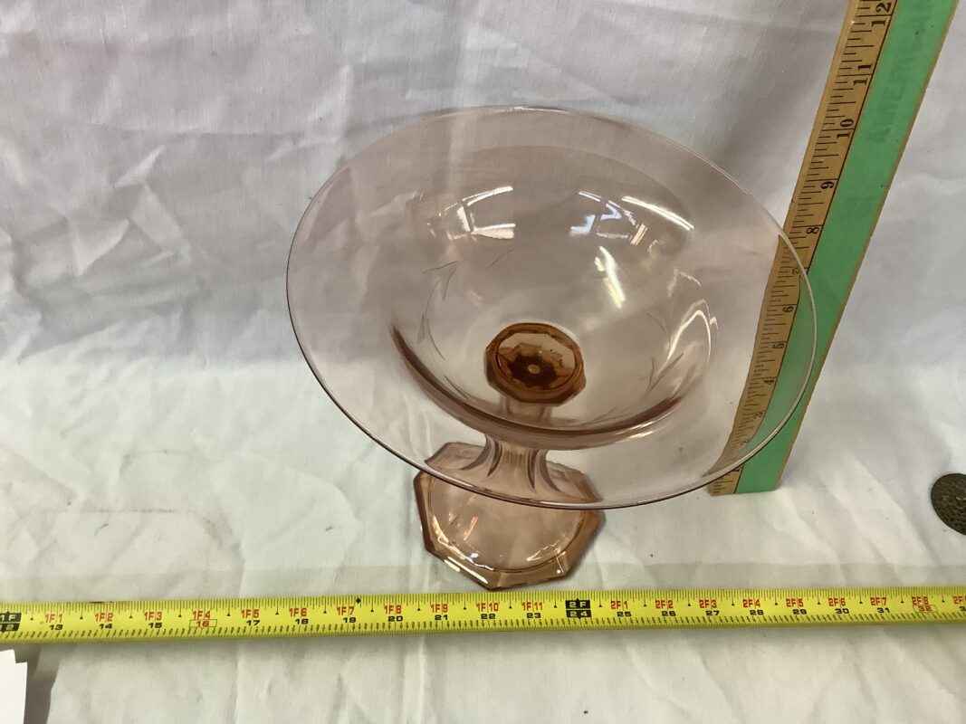 Pink depression etched Glass Bowl stands on pedestal