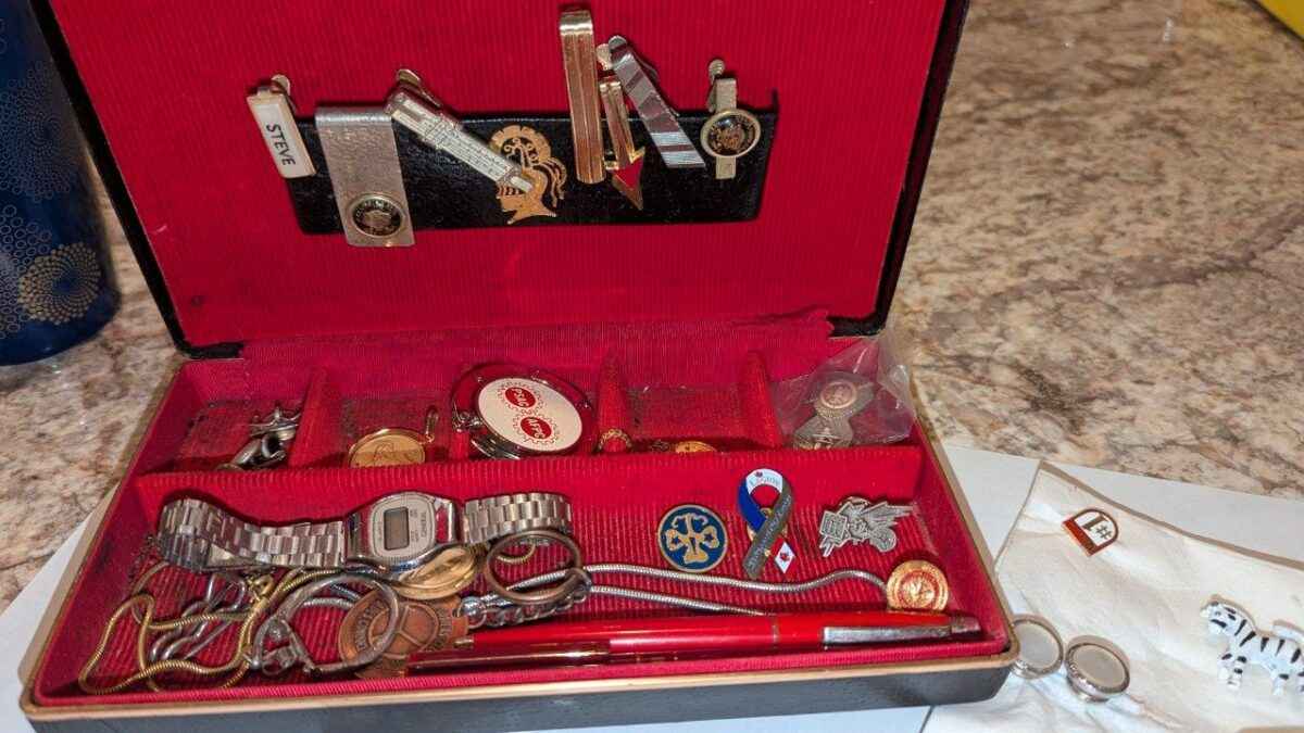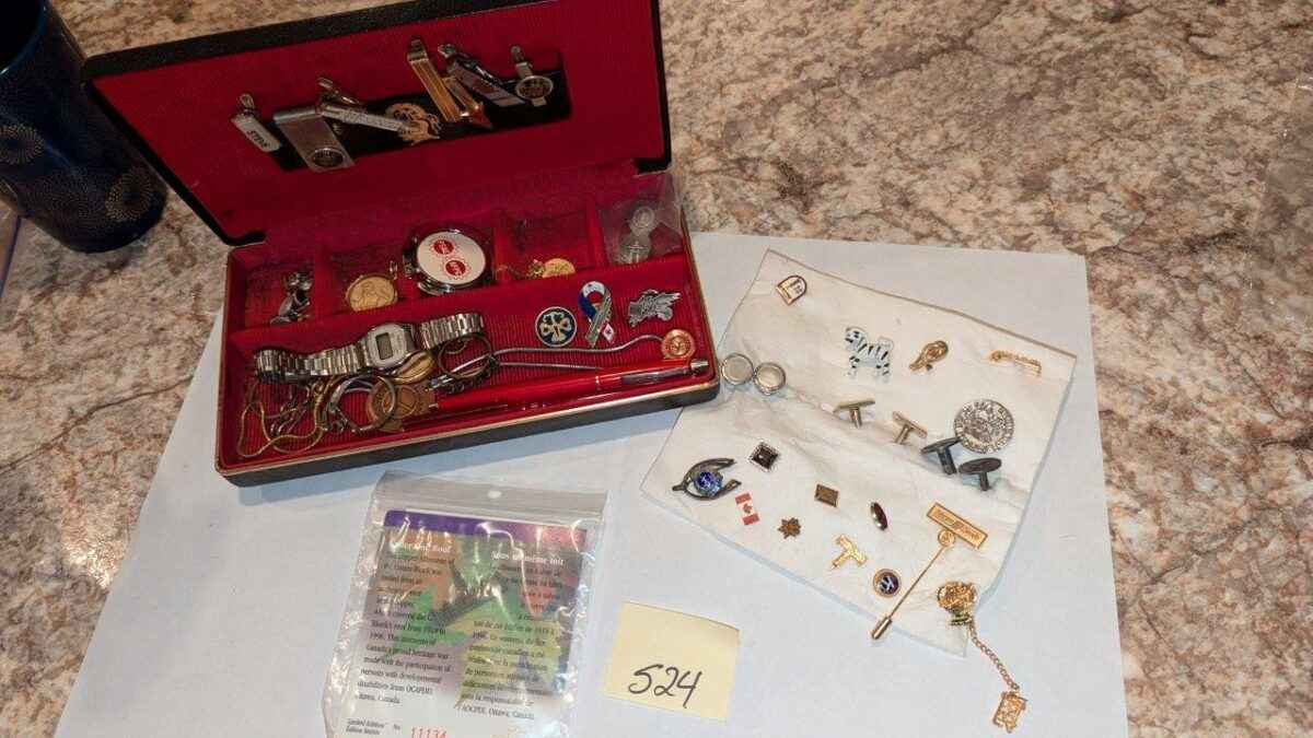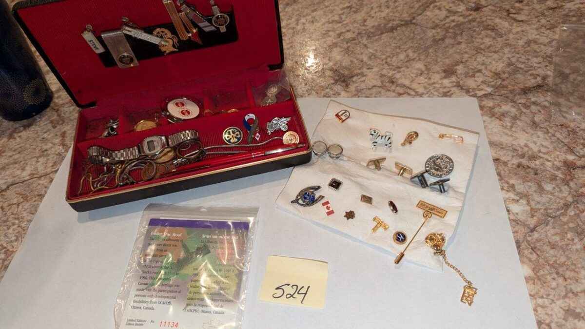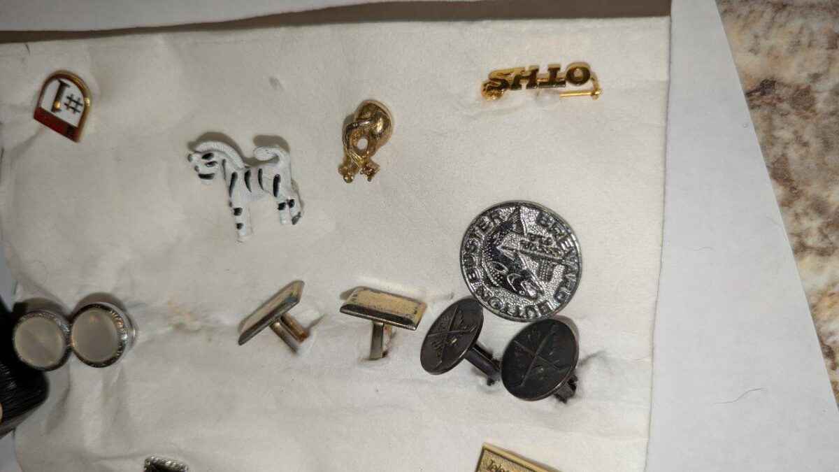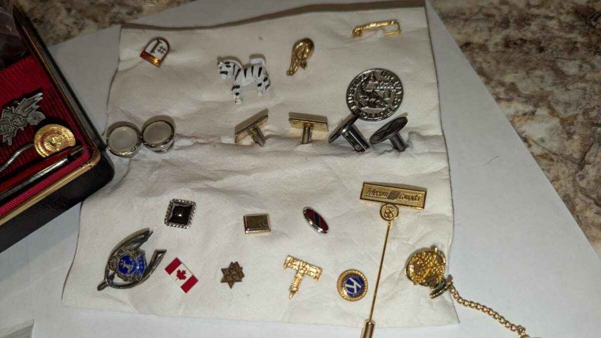Pins, tie clips, key chain, etc