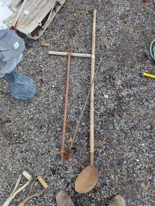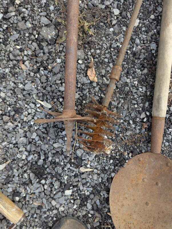 Pipe brush, shovel scoop, hole auger