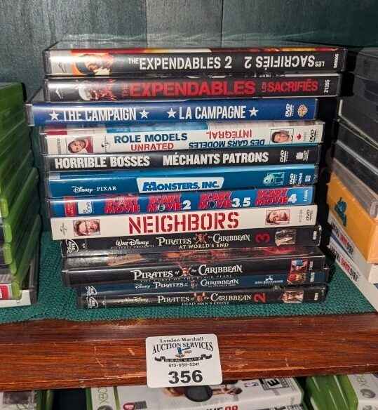 Pirates of the Caribbean, Scary Movie series, etc DVDs