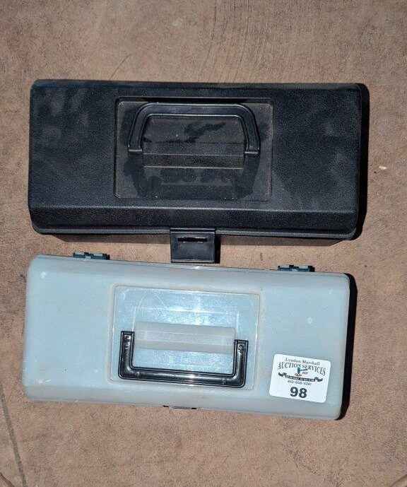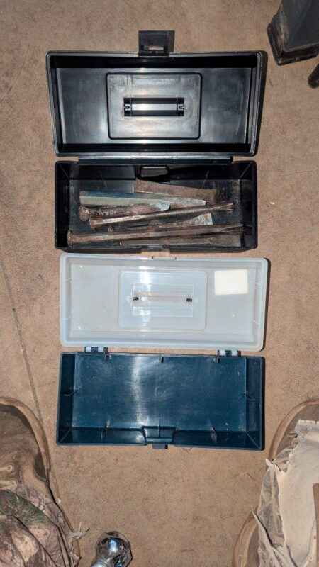 Plastic tool boxes, cold chisels, etc