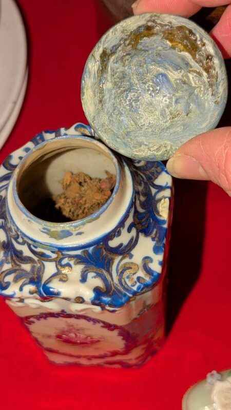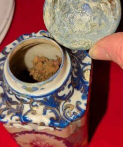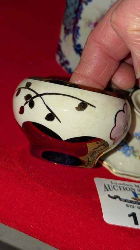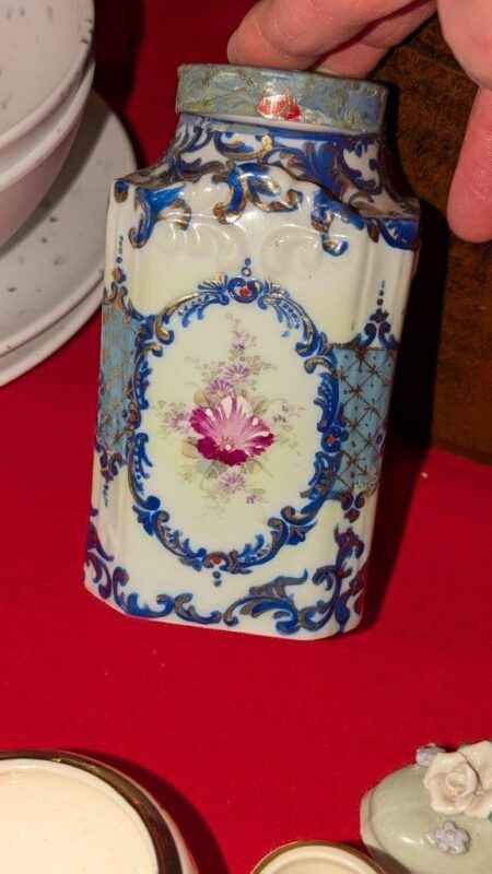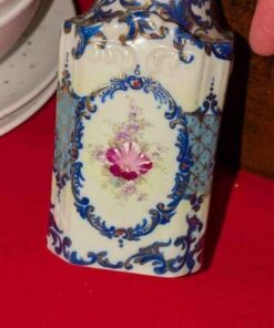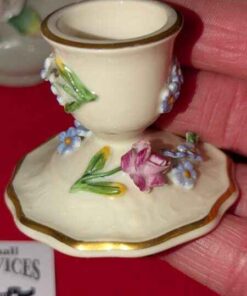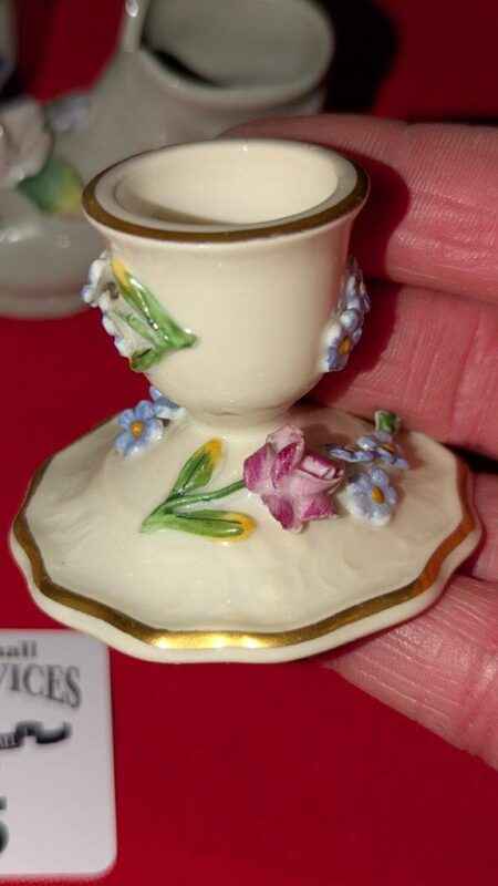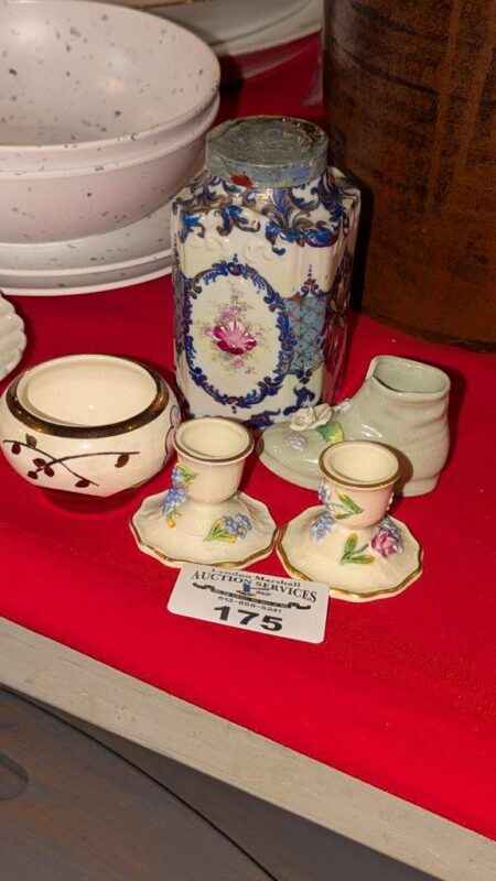 Porcelain candle stick holders, mini vase, covered jar