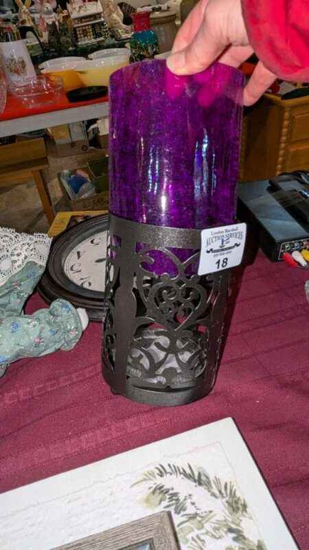 Purple glass insert candle holder