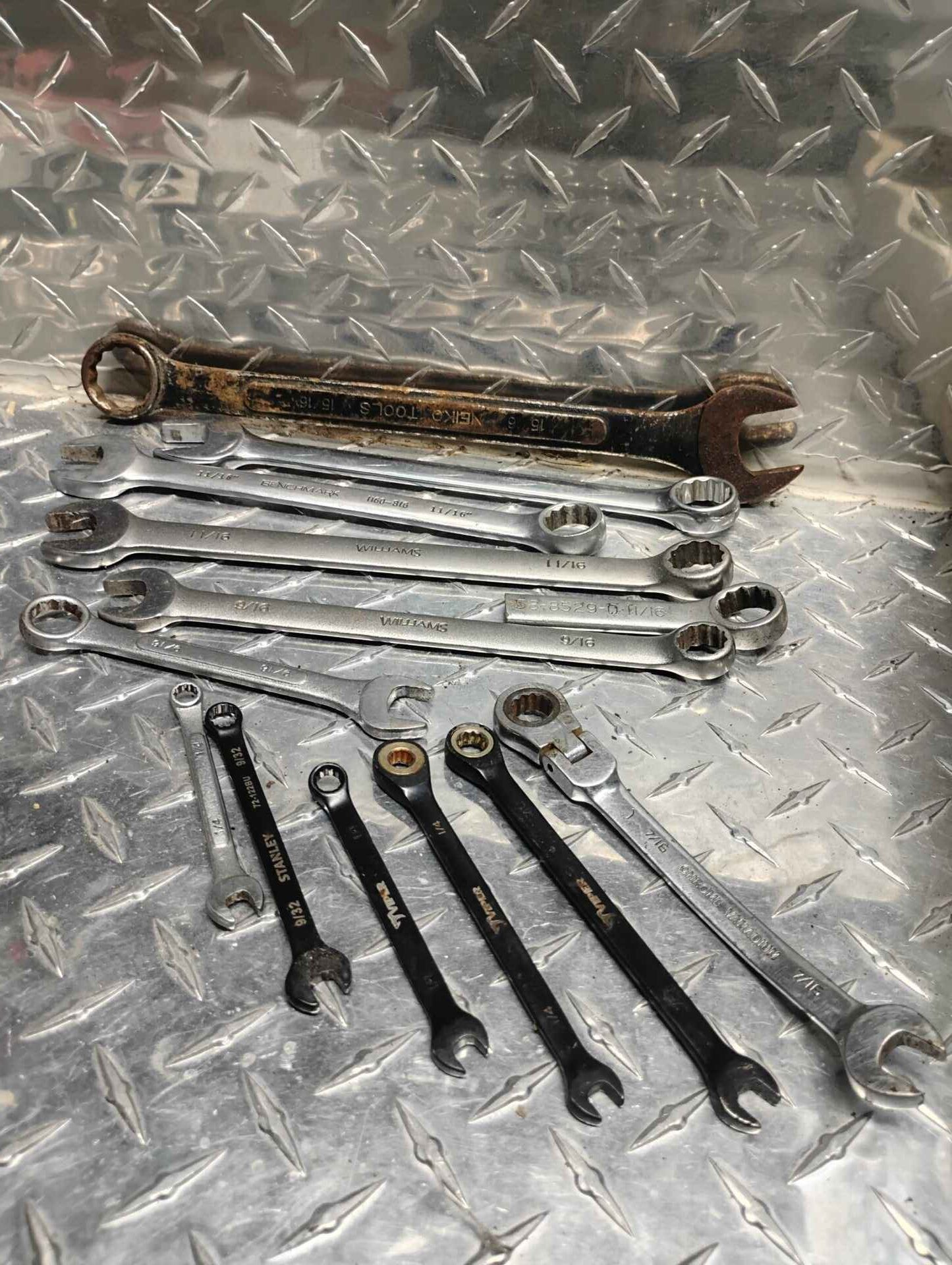 Qty 13 assorted SAE wrenches including ratcheting wrenches