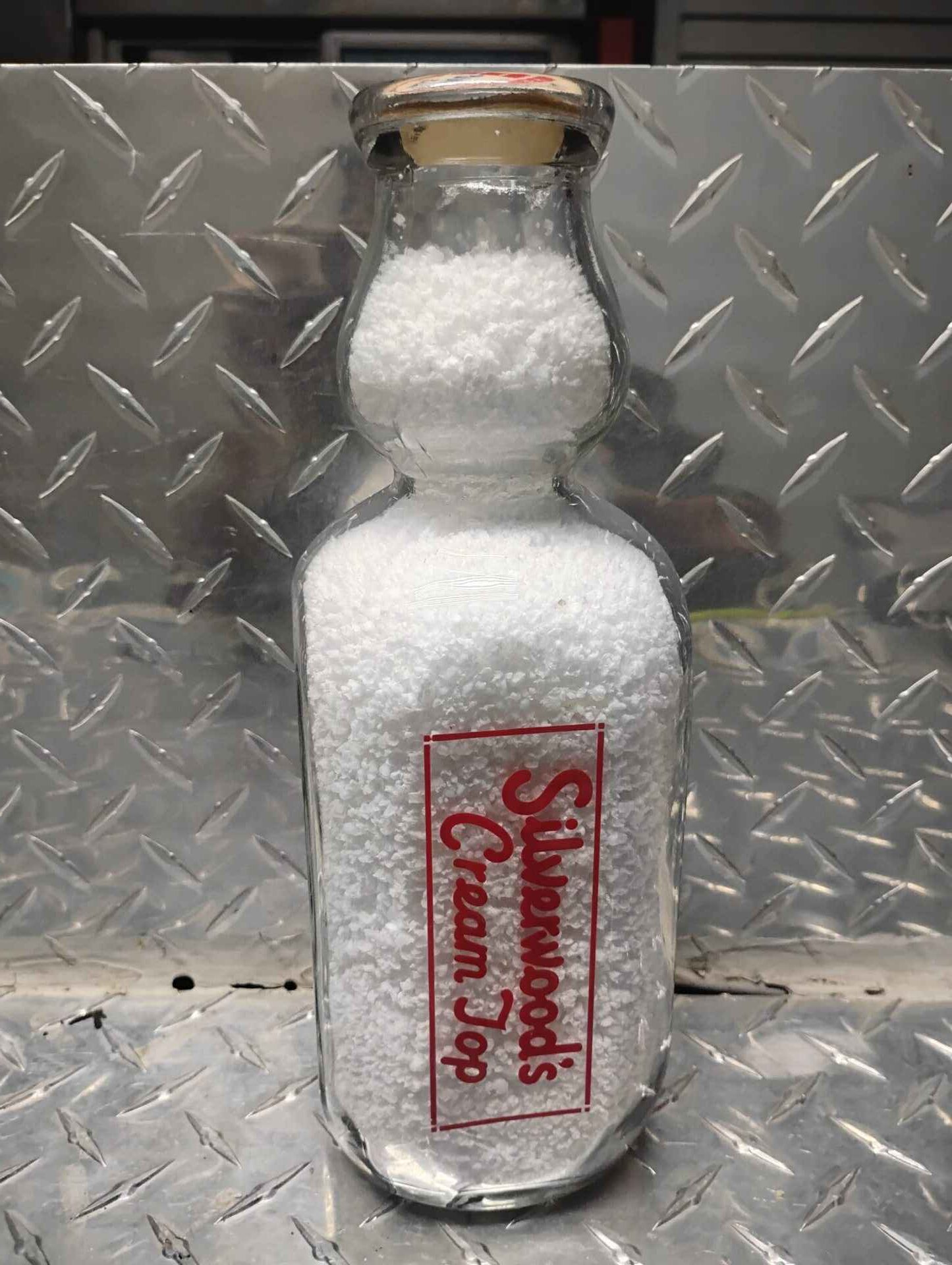 1942 Silverwoods cream top cream bottle (with crushed styrofoam for filler)