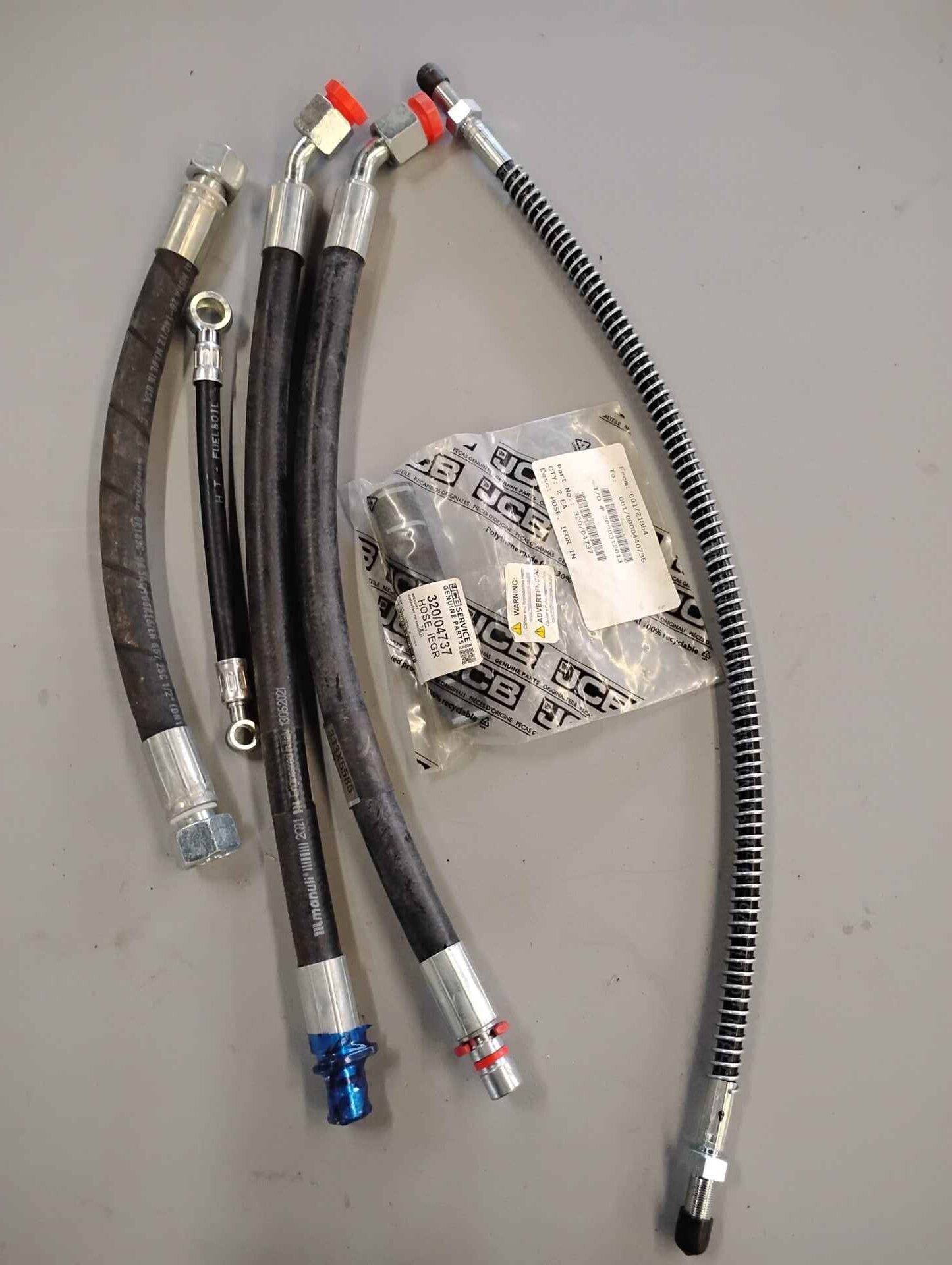 Qty 6 assorted JCB short hydraulic , fuel and other hoses