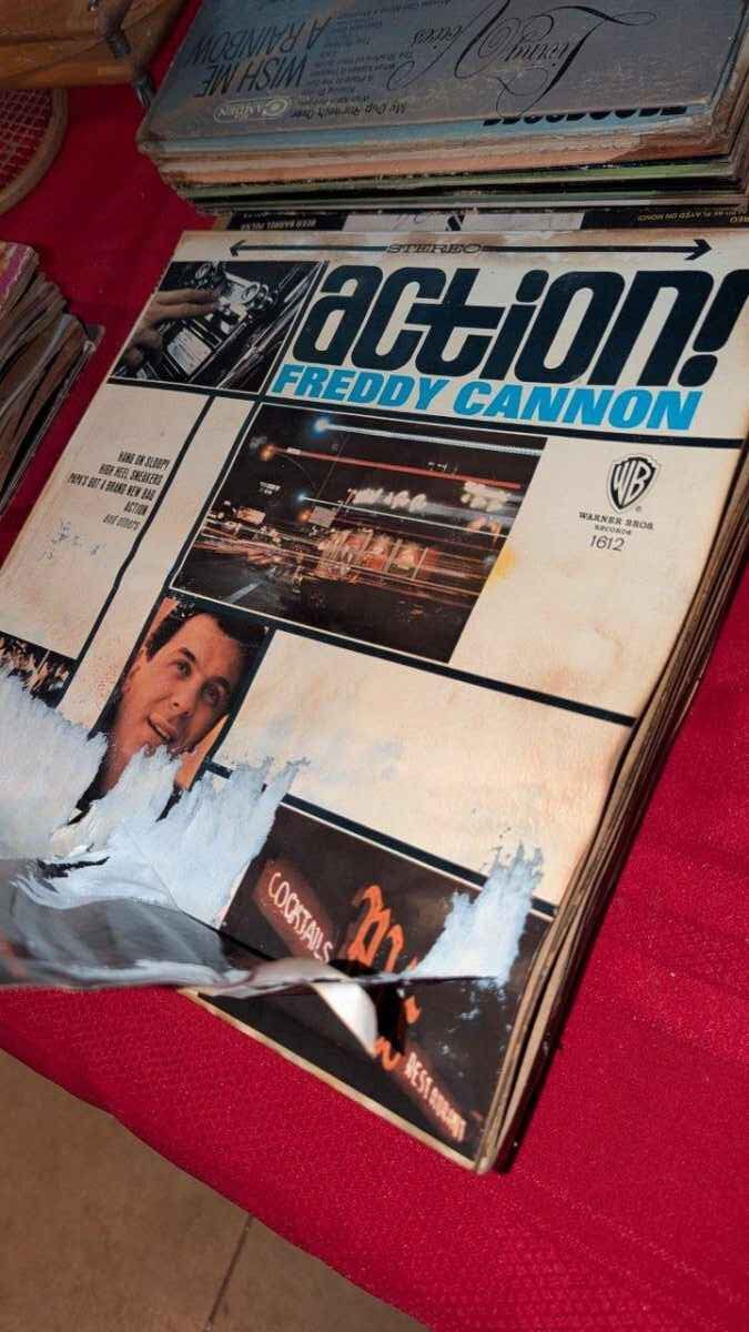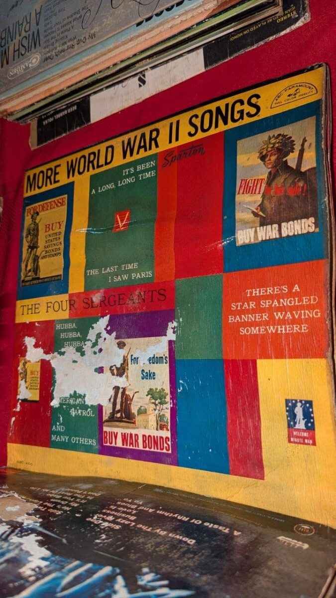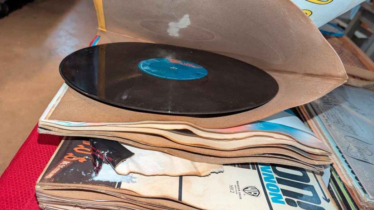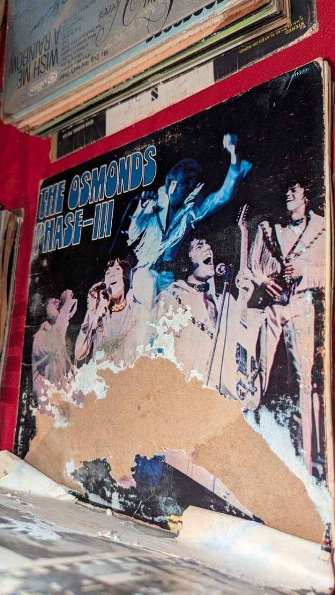 There is significant damage to the record album sleeves