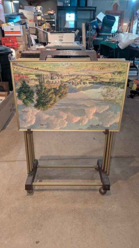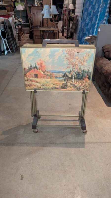 Retro metal TV trays and stand
