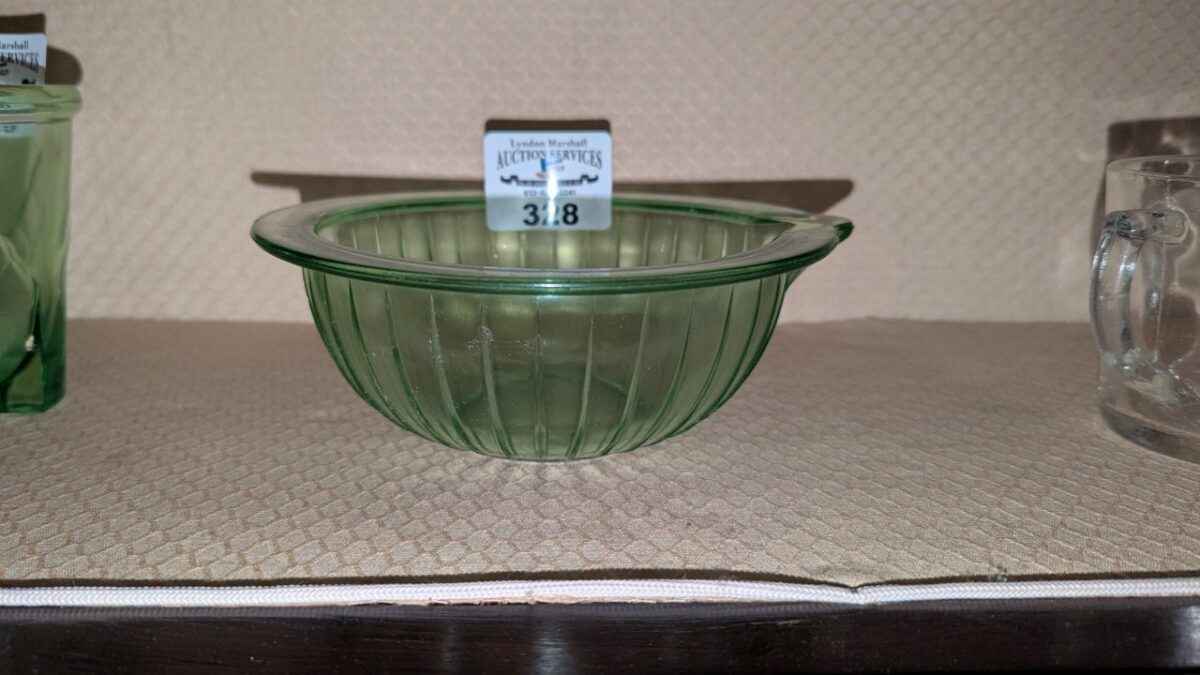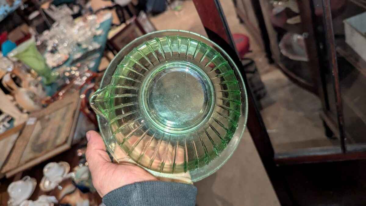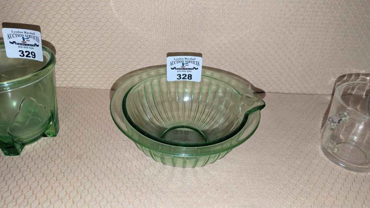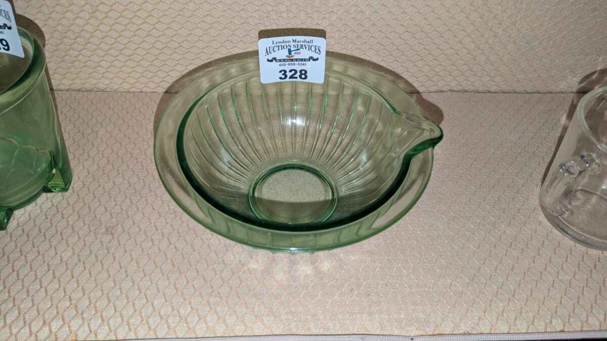 Green Depression glass spout bowl