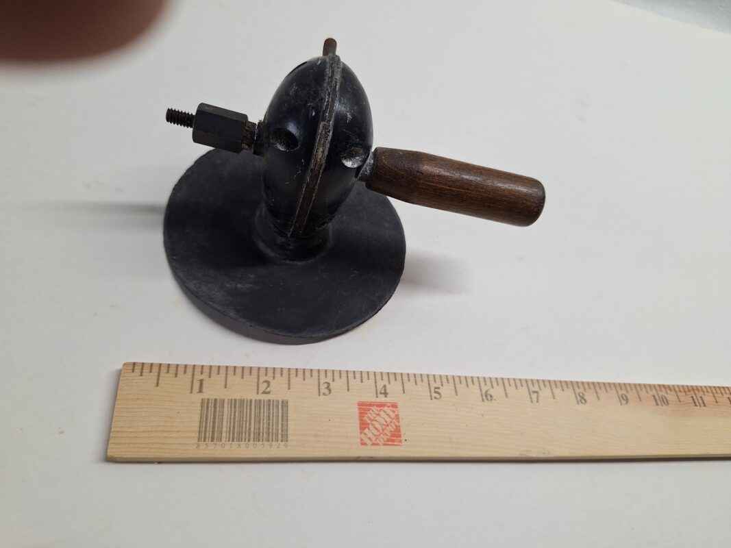 A5 – Right-angle drill attachment with a sanding disc, used