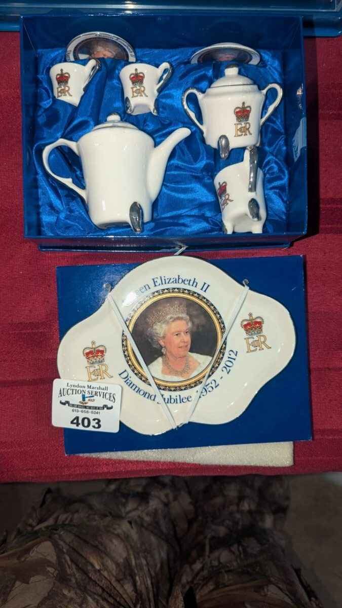 Royal Diamond Jubilee commemorative miniature tea set and plate