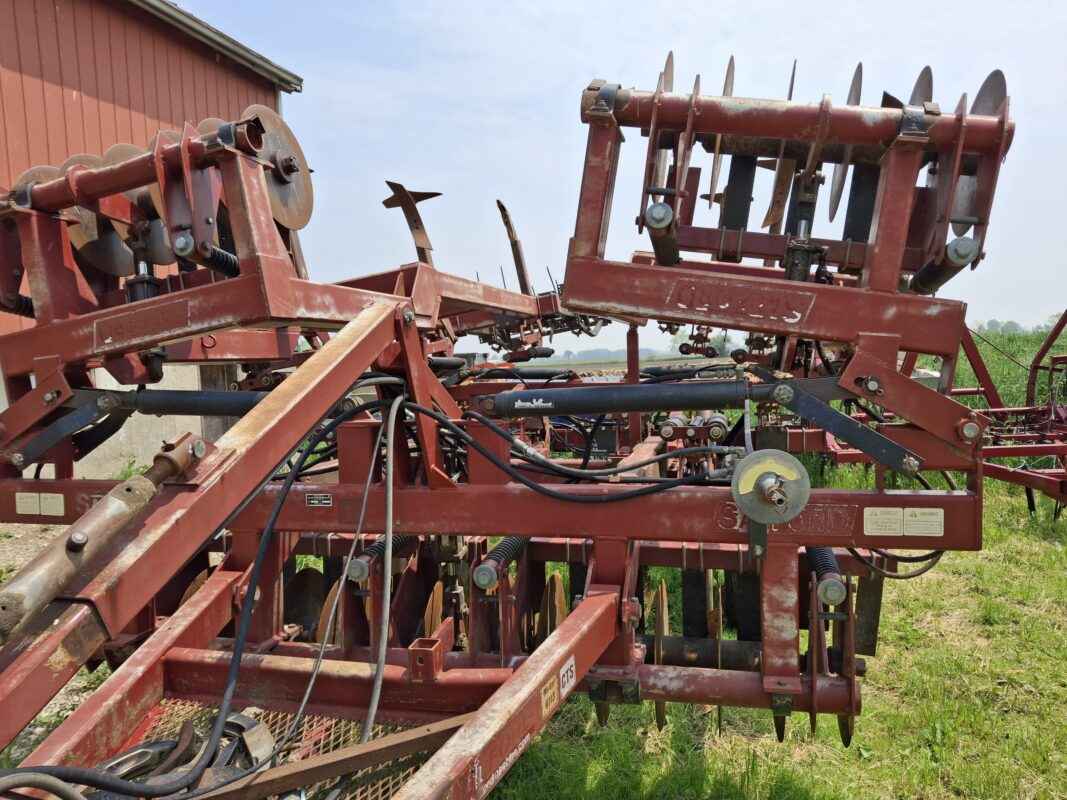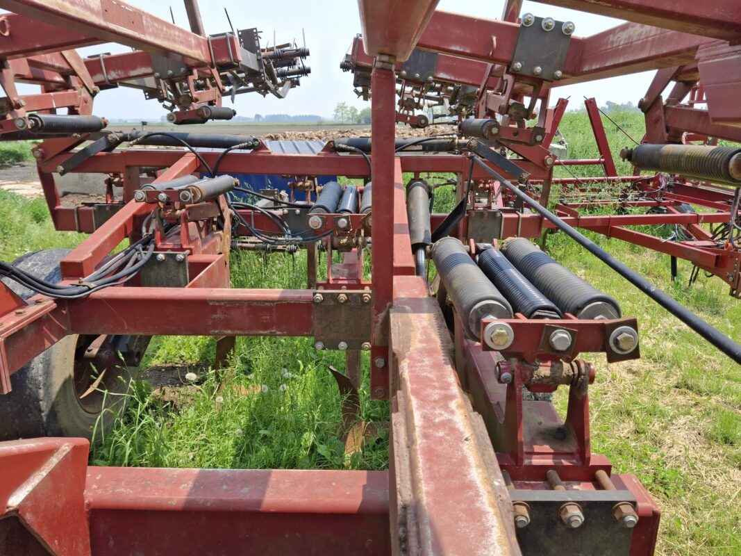 Leveling system is heavy-duty Spring harrows and rolling basket. Adjustable down pressure on them allow you to leave the field in slight ridges or level.