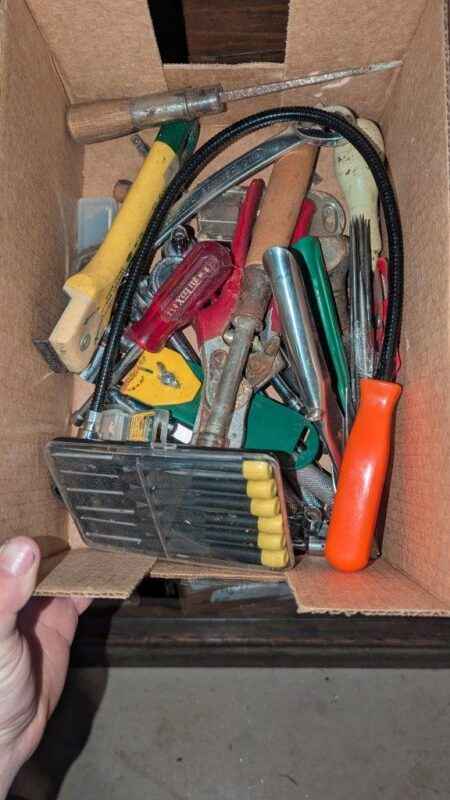 Screwdrivers, Paint scrapers, ratchet wrenches, sockets, etc