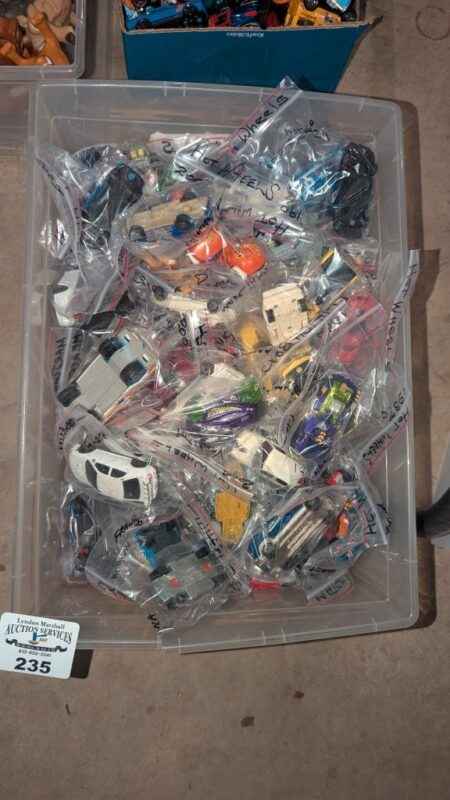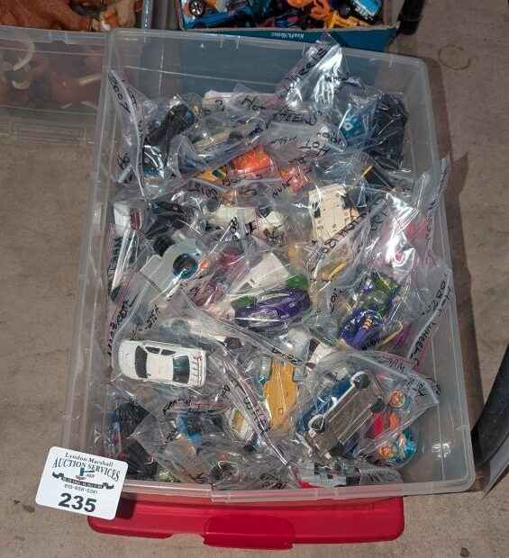 Selection of Hot Wheels Diecast model cars in clear tote