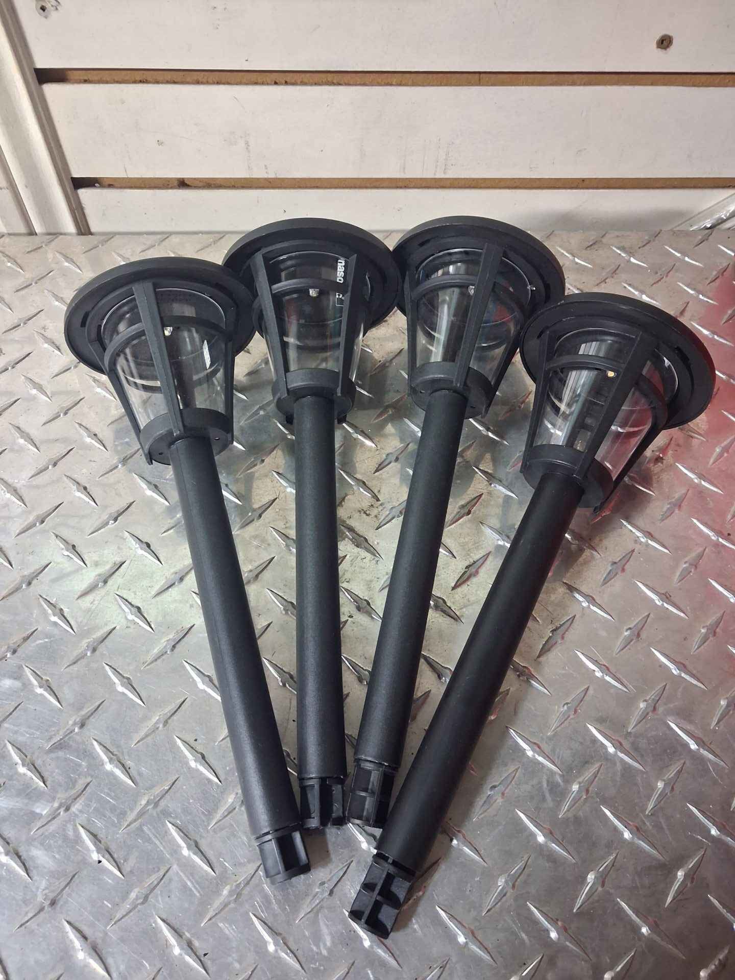 Set of 4 black solar pathway lights ROUND