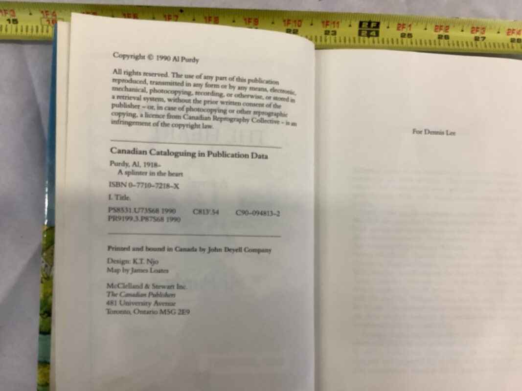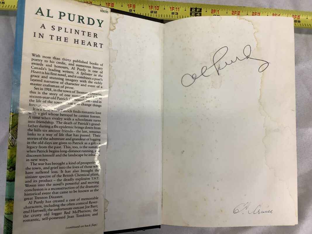 Signed Hardcover Book by Al Purdy – A Splinter in the Heart