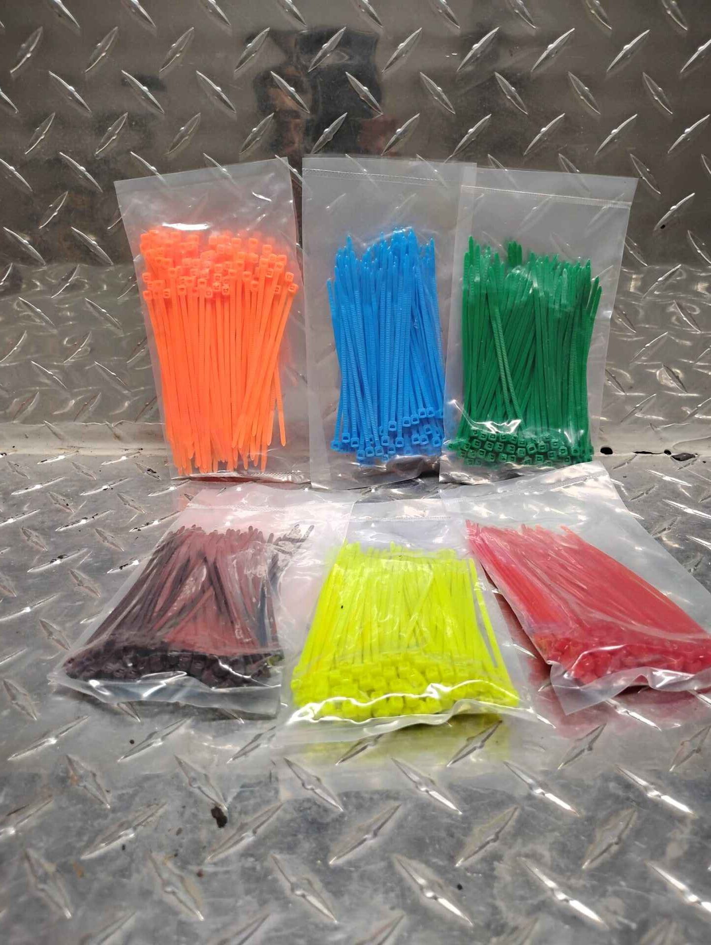 Six packages of assorted color cable ties