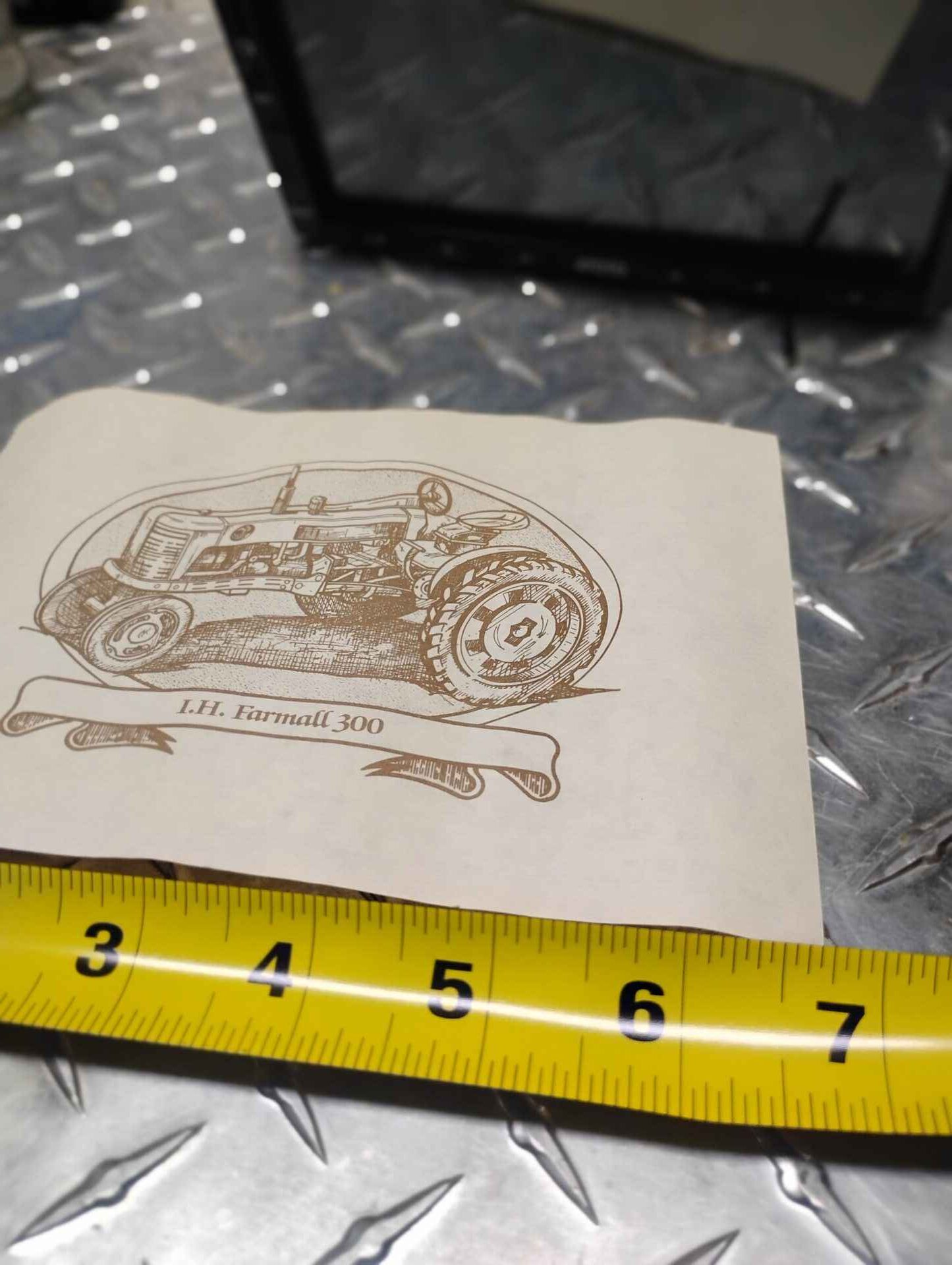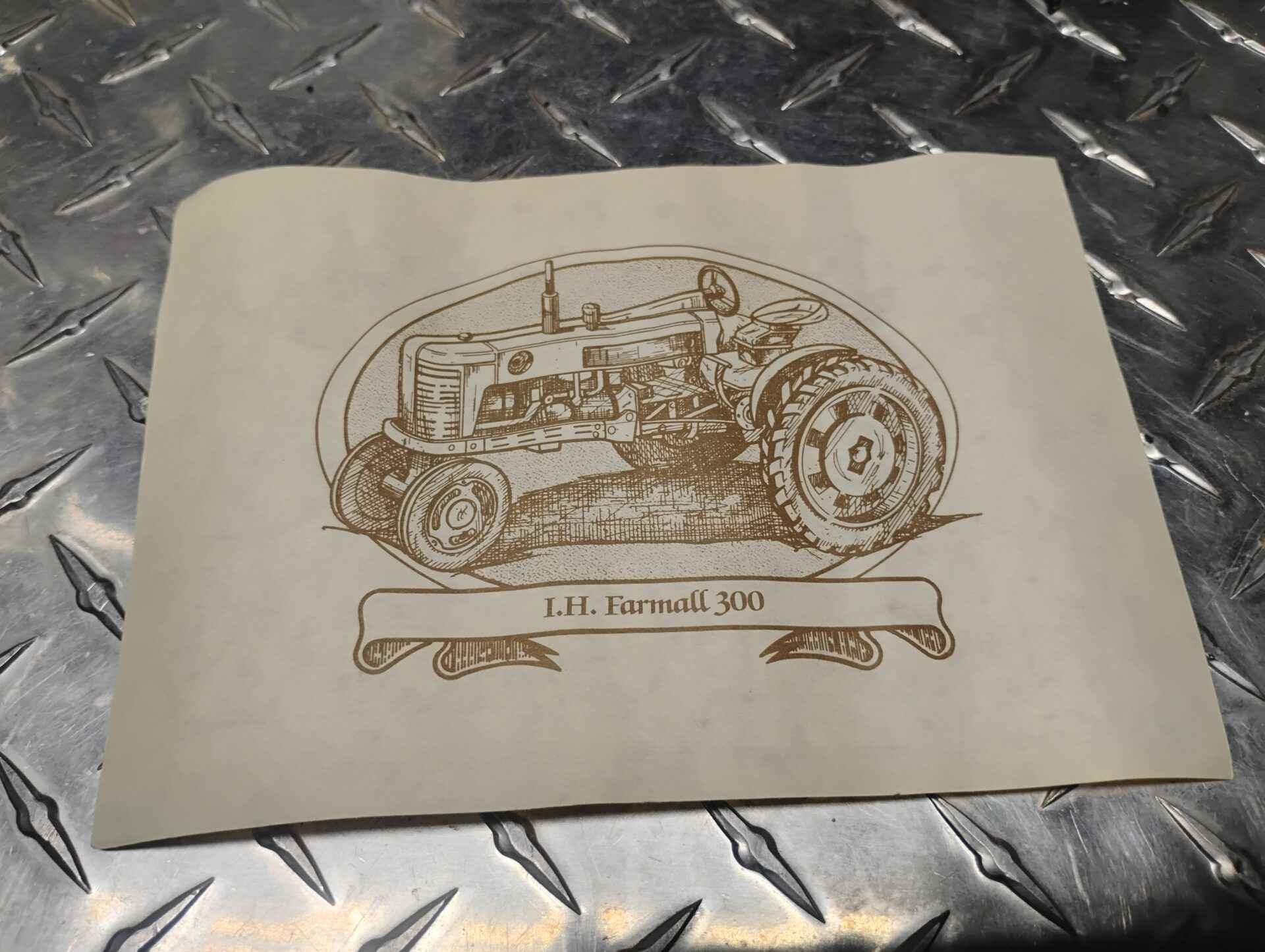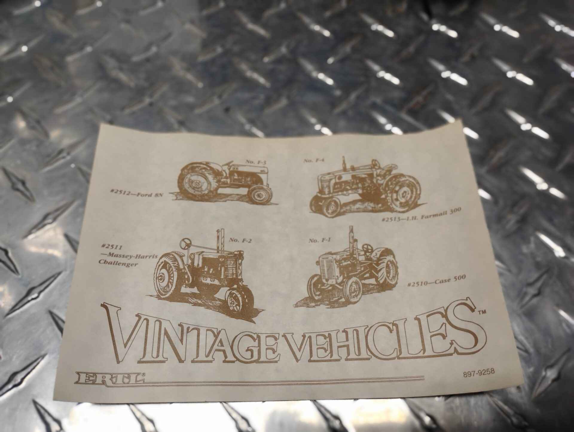 Small Farmall poster one side vintage vehicles other side