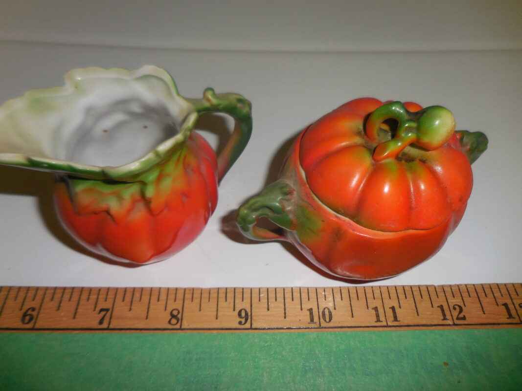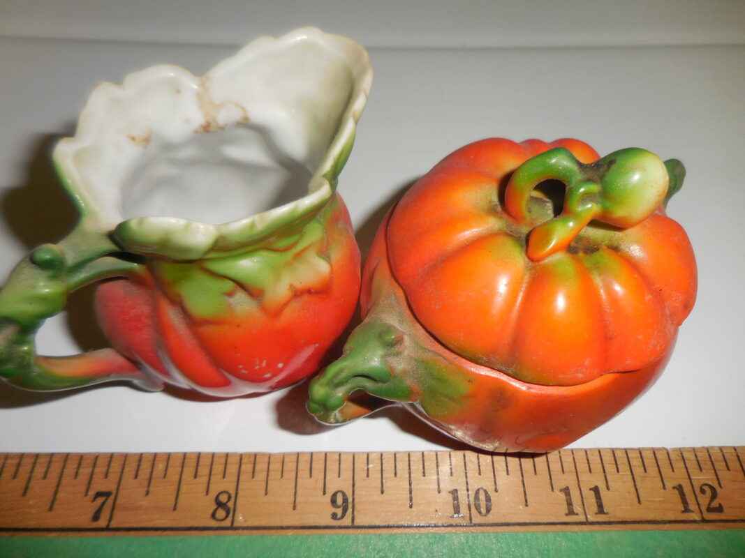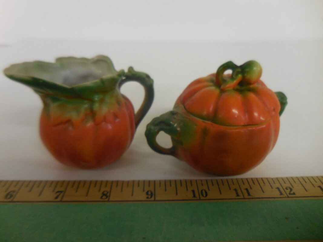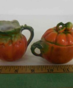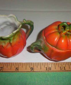 Small tomato ware cream & sugar with lid