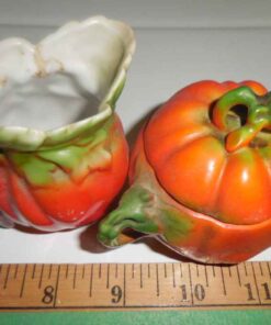 Small tomato ware cream & sugar with lid