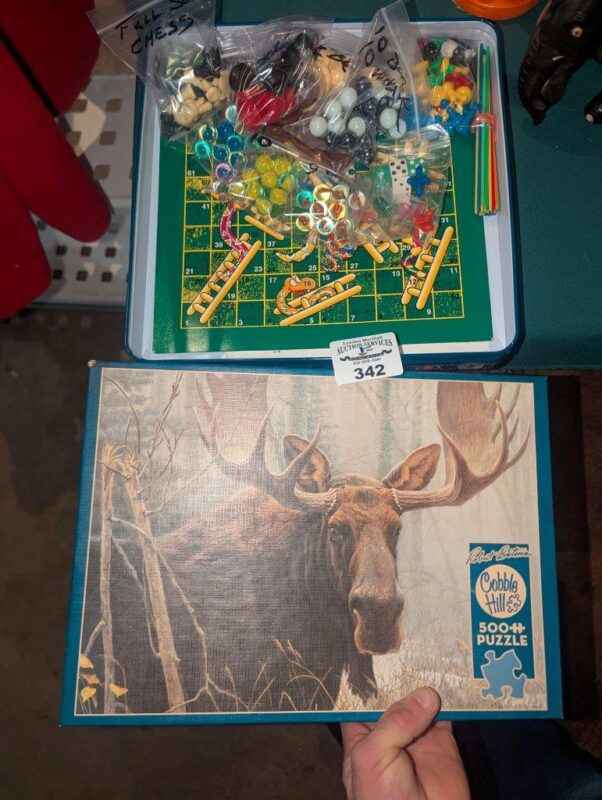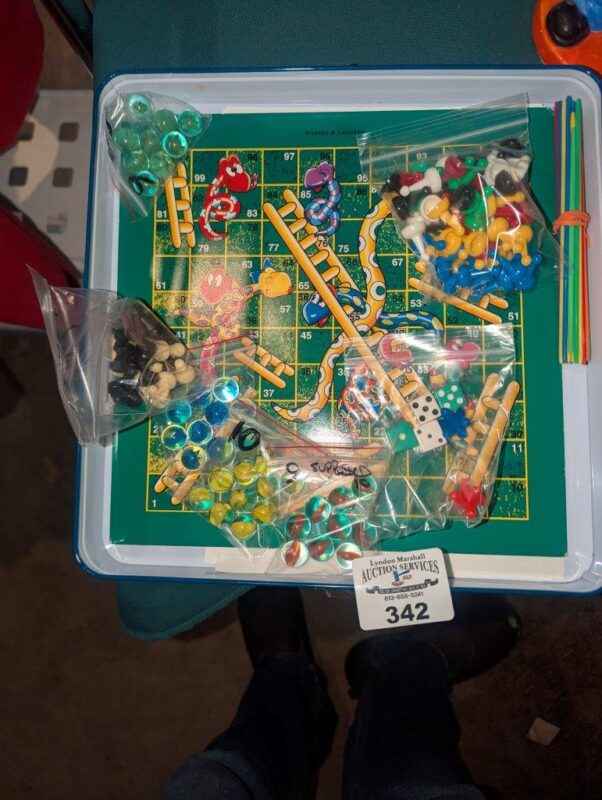 Snakes and ladders, game pieces & puzzle